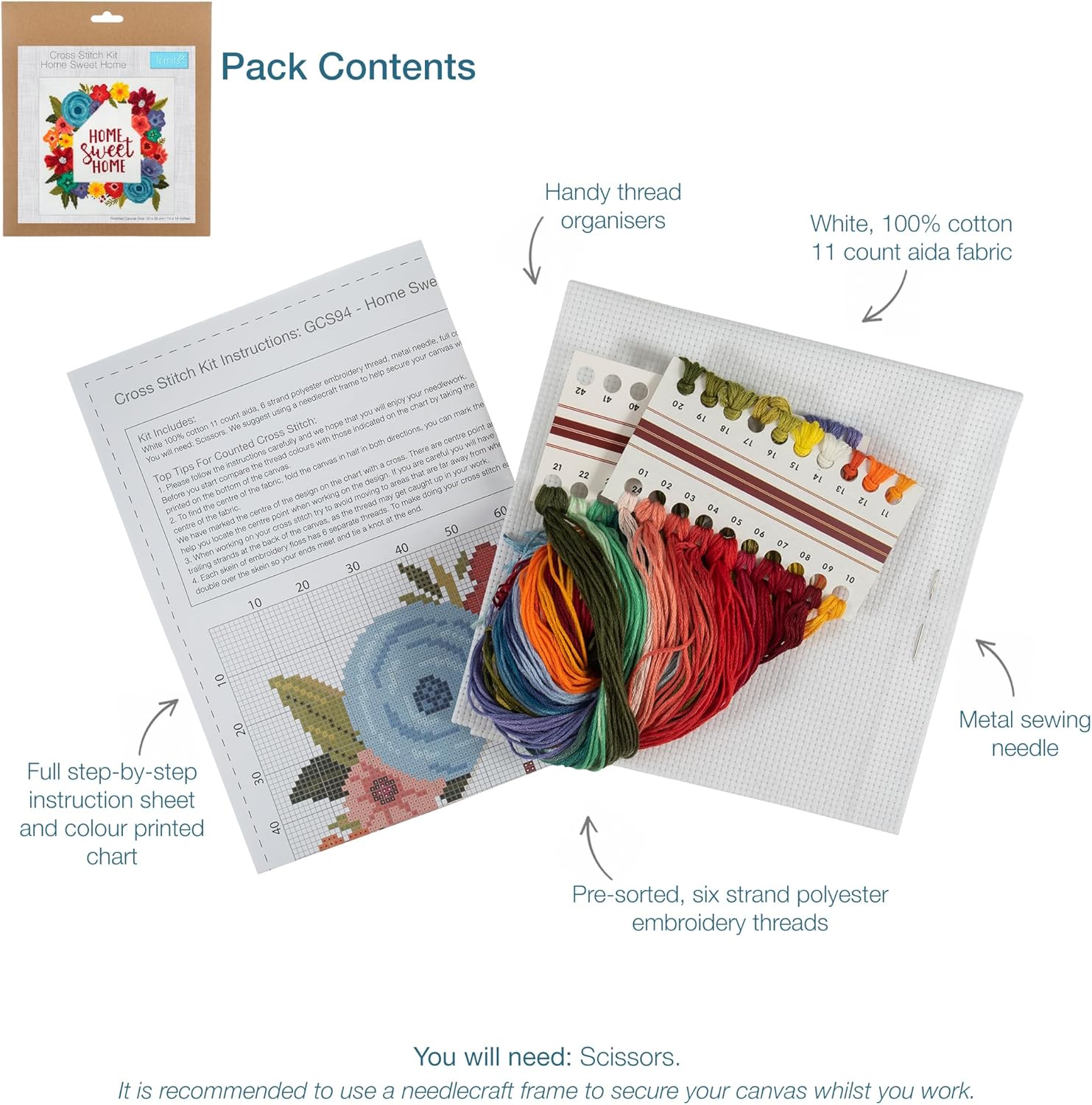 Trimits Large Cross Stitch Kits - Counted Embroidery Needlework for Adults Beginners Kids, Christmas Gifts Wall Art (Frame Not Included), 11 Count, Home Sweet Home