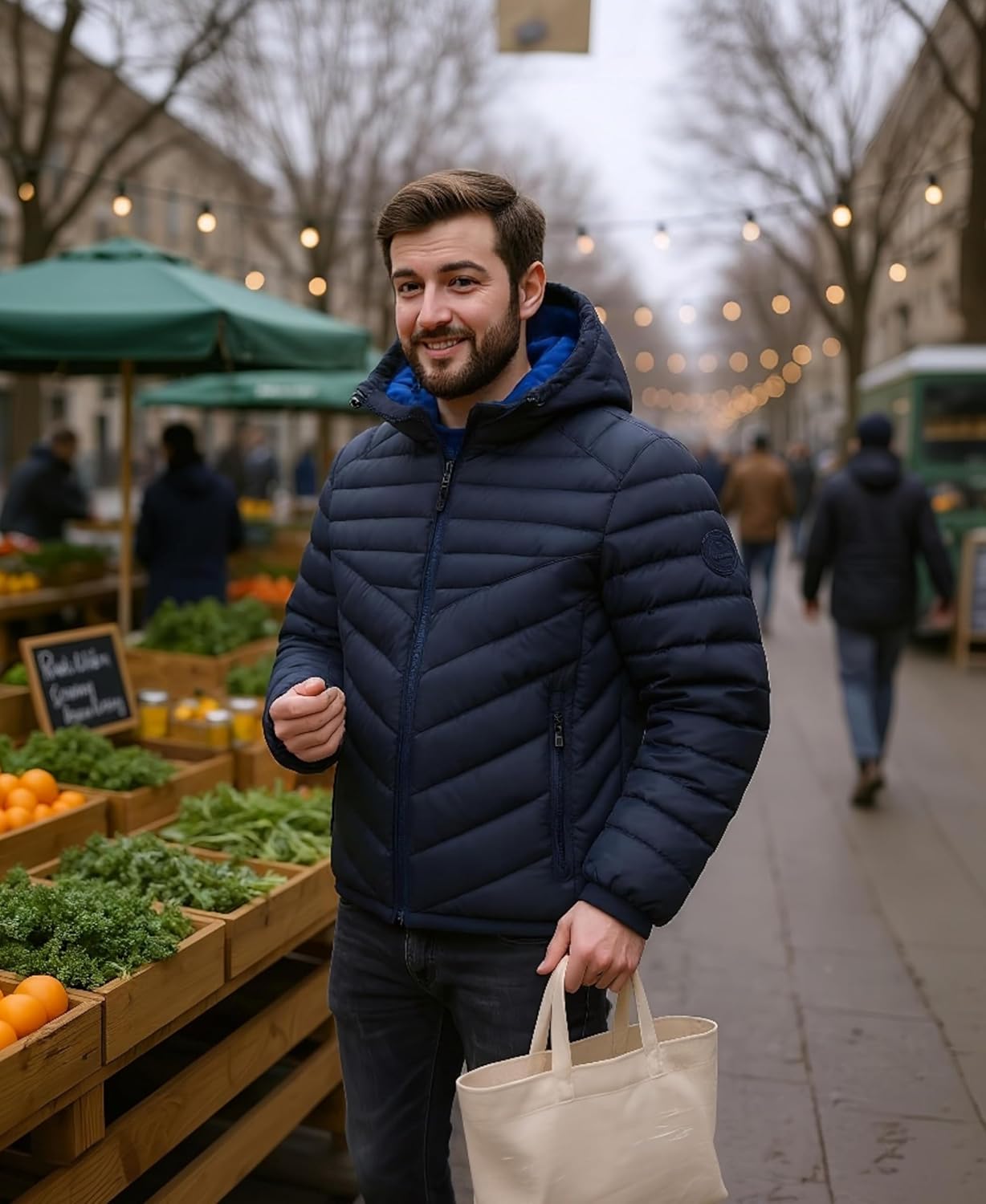 Chaqueta acolchada ligera Rokka&Rolla para hombre, impermeable, con capucha, abrigo de invierno