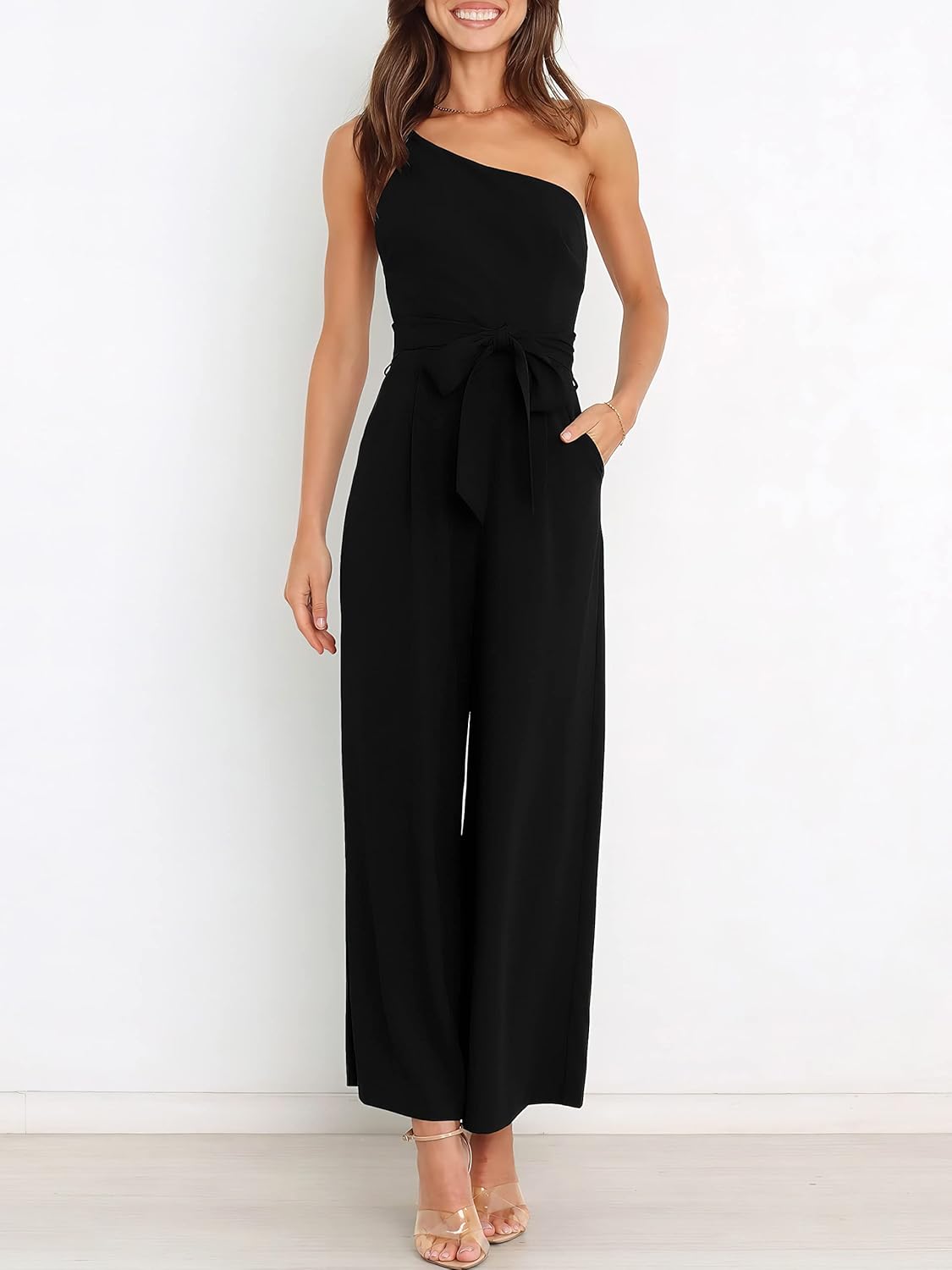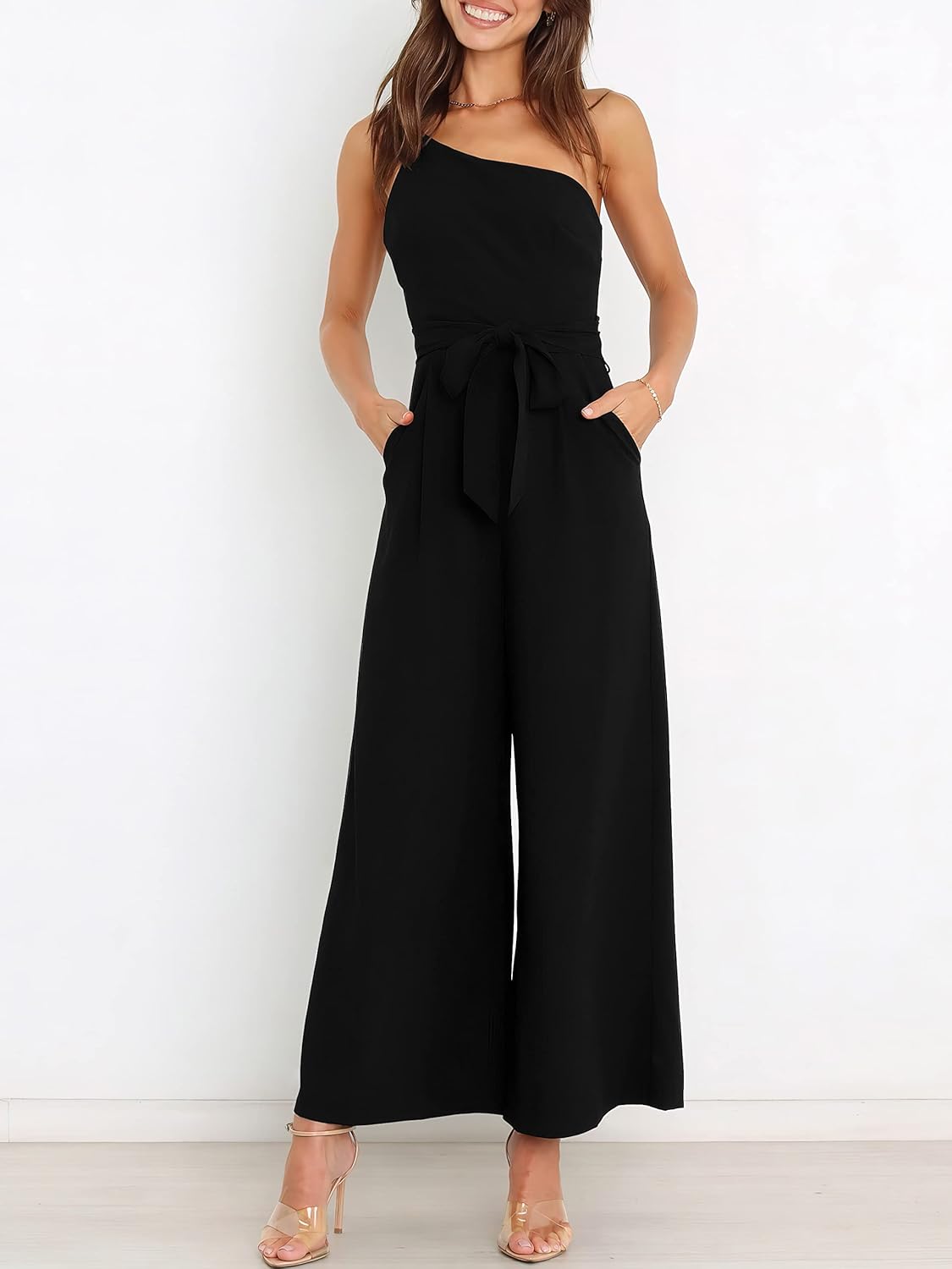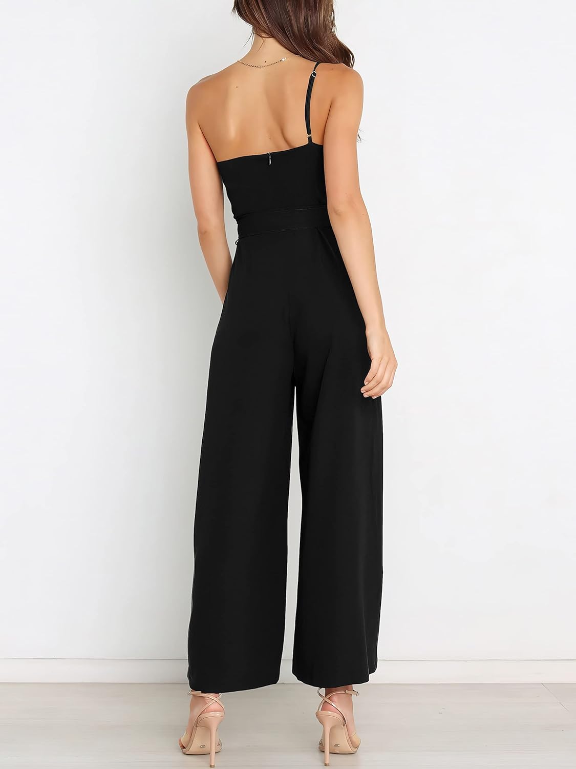 ANRABESS Women Summer Dressy Jumpsuits One Shoulder Sleeveless Casual Wide Leg Pants Romper Jumper 2025 Trendy Fall Outfits