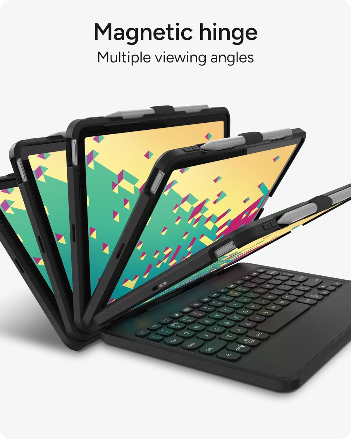 EXTRAORDINARY FEATURES - With Bluetooth multi-device pairing, you can connect up to 2 devices simultaneously and toggle back and forth between them. The keyboard is also equipped with forward-facing speaker cutouts and a holder for Apple Pencil or stylus