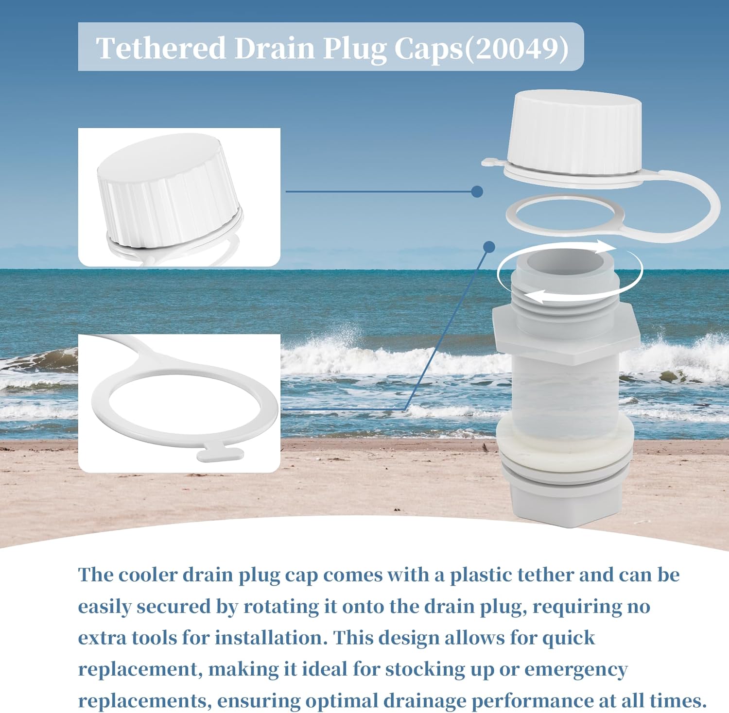 Threaded Drain Plug Caps with Plastic Tether for Cooler,Compatible with Igloo 50-165 Qt Coolers,Cooler Replacement Parts-2 Pack