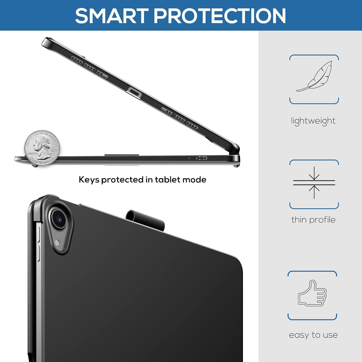Smart Features - A keyboard case for ipad air 11 inch with a premium hardshell design, protects all sides of your iPad; auto sleep/wake initiates when keyboard case is opened & closed to conserve battery life; holder for your Apple Pencil so it won't get lost or in the way.
