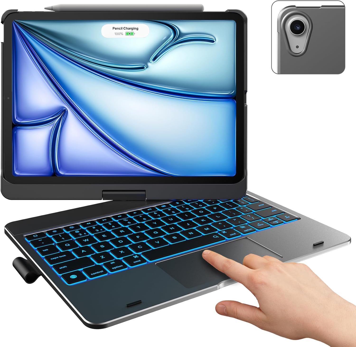 typecase Touch Keyboard Case with Trackpad for iPad Air 11-inch (M3 2025 / M2 2024): 360°Rotatable - 11 Colors Backlight - Wireless Keyboard with Pencil Holder for iPad Air 5th & 4th Gen,Space Gray
