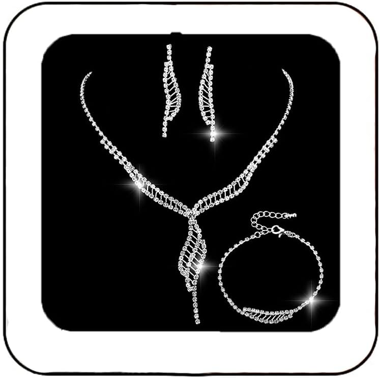 Unicra Silver Bride Wedding Jewelry Sets Rhinestone Bridal Necklace Earrings Set Prom Costume Choker Necklaces for Women