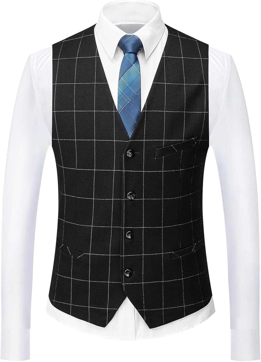 Mens Plaid Suit Slim Fit 3 Pieces Casual Checked Vintage Tuxedo Suit for Men for Wedding Business Party Blazer Pants & Vest