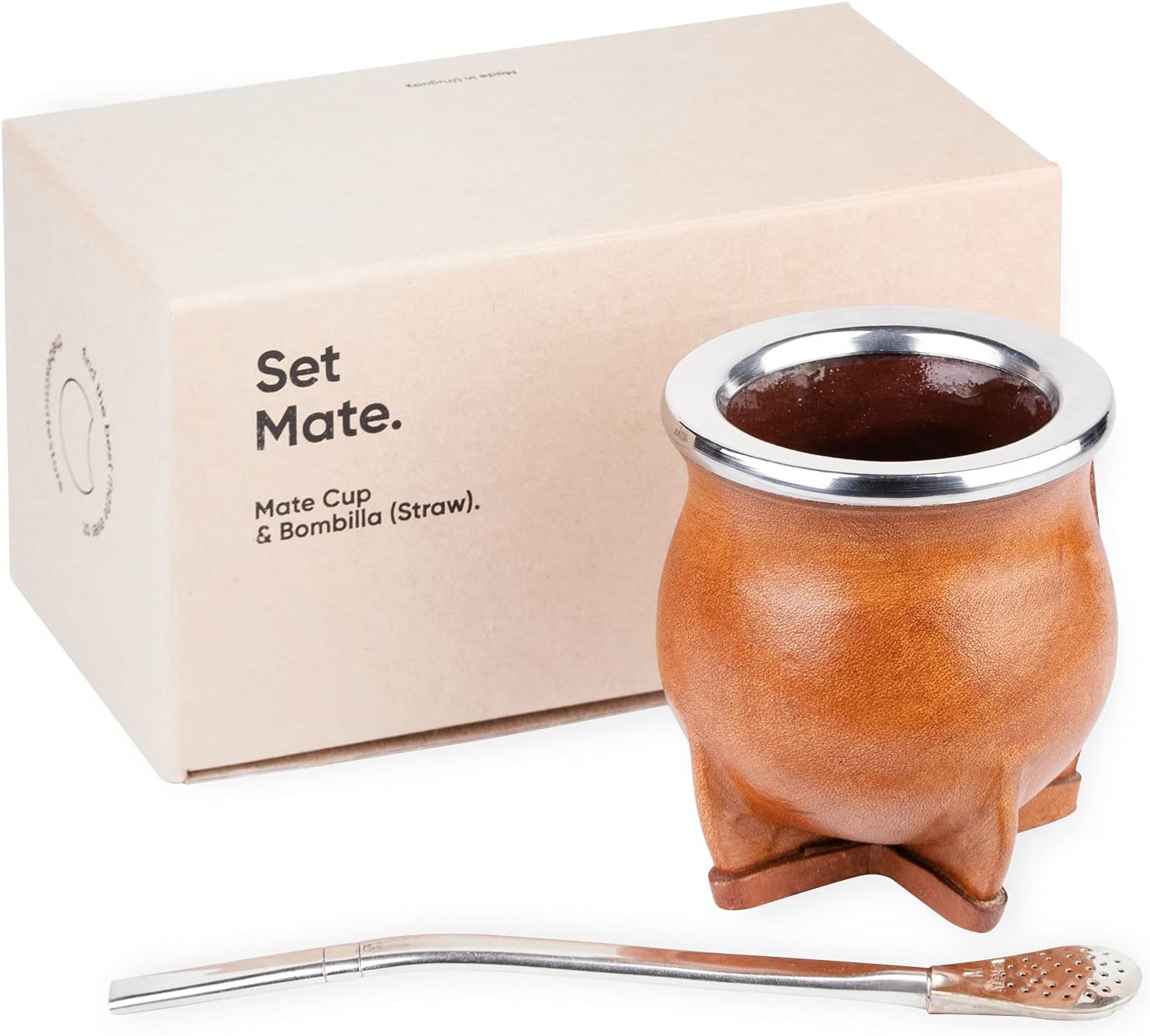 PACKAGE CONTENT: 1 Camionero Cup, 1 German Silver Bombilla Straw and 1 Cleaning Brush