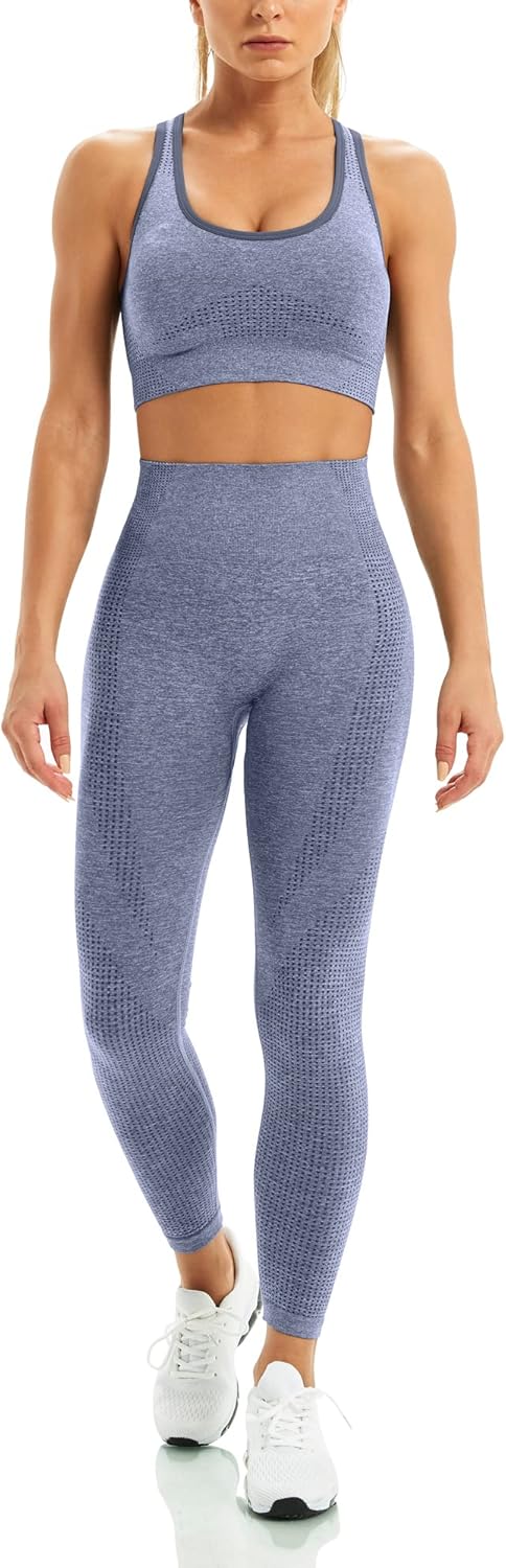 WodoWei Women 2 Piece Workout Outfits Sports Bra Seamless Leggings Yoga Gym Activewear Set