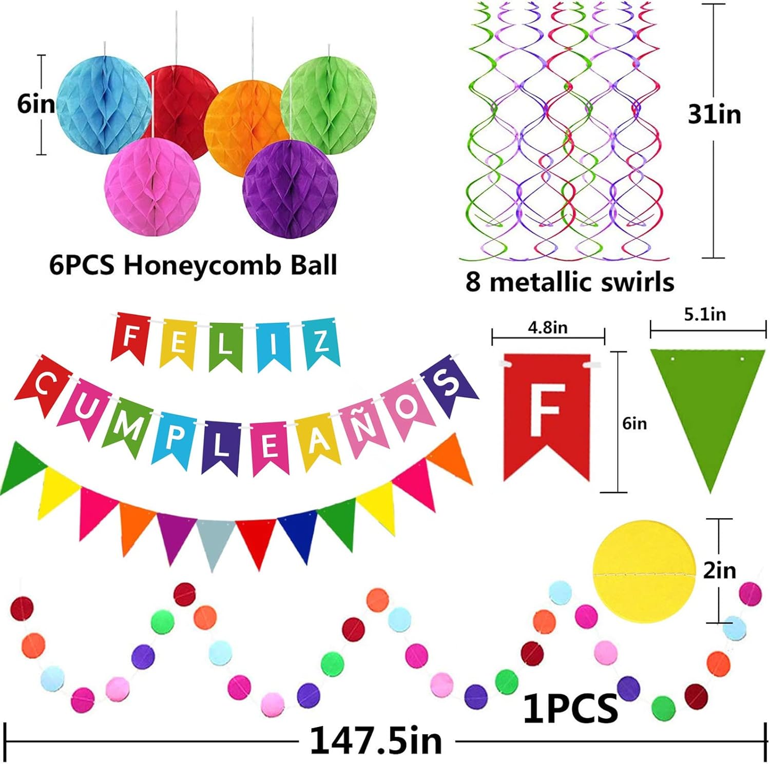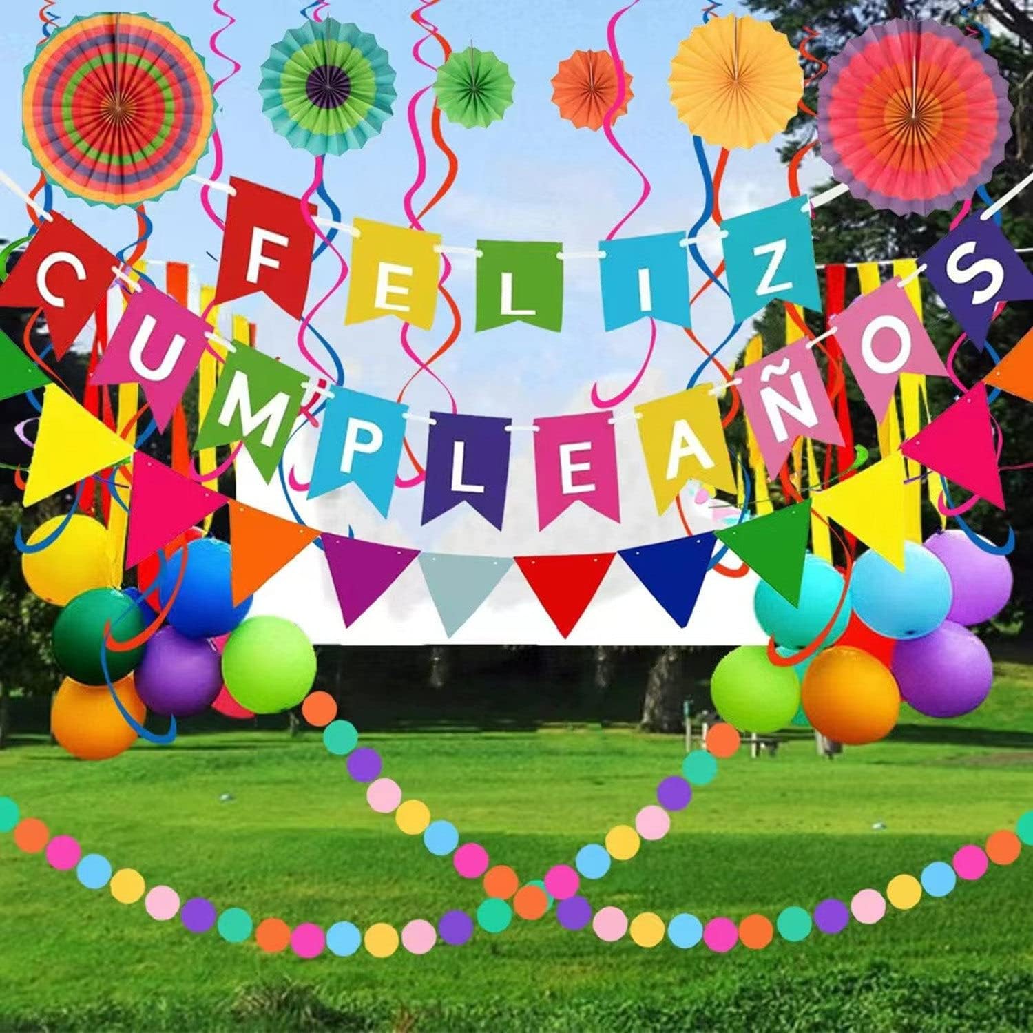 Feliz Cumpleanos Mexican Fiesta Spanish Themed Banner Paper Fans Backdrops Decorations Supplies With Colorful Paper Flowers Flag Bunting Confetti Swirl Streamers Honeycomb Ball For Birthday Party For