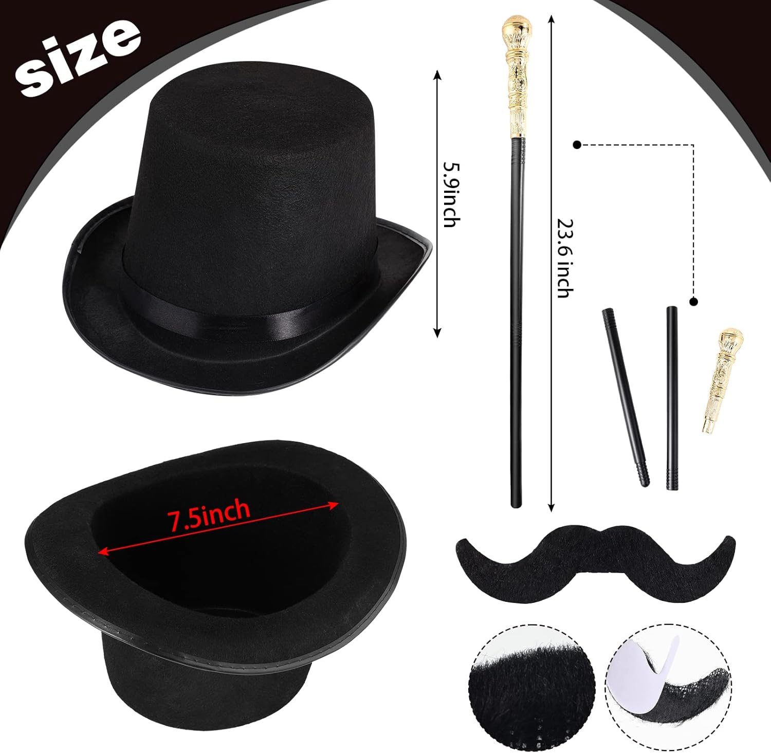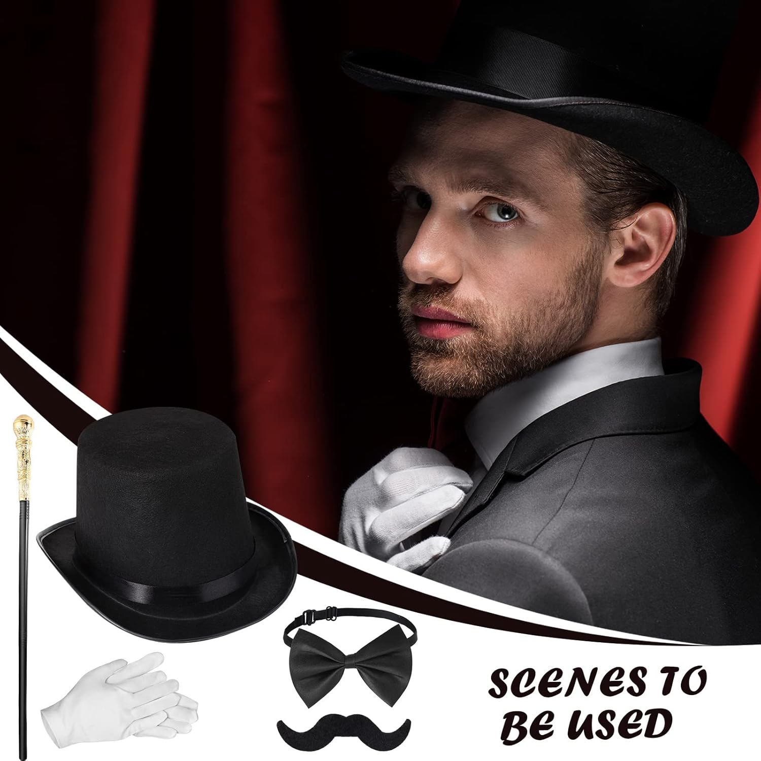 Jadive 6 Pcs 1920s Men Accessories Gentleman Costume Hat Round Head Scepter Magnifying Glass Necklace Bow Tie Gloves Beard