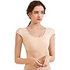 Tops Tees Short Sleeves 2 in 1 Built-in Shoulder Pad Women T-Shirts Leisure Woman T Shirt for Female,Beige-Medium