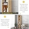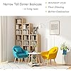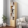 IOTXY Small Narrow Corner Bookcase - 59 Inches Tall Gap Freestanding Storage Cabinet, 6 Lattices Open Shelves Tower Rack with Door, Cubes Bookshelf in Oak