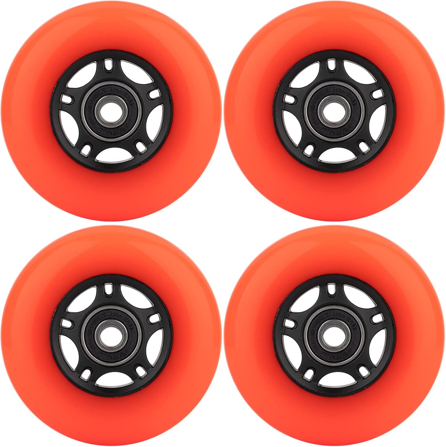 Inline Skate Wheels with Bearings ABEC-9 and Floating Spacers for Blades Roller Hockey Skates, 85A Indoor & Outdoor, 64mm/70mm/72mm/76mm/80mm Dia, 4-Pack (Orange, 76mm)