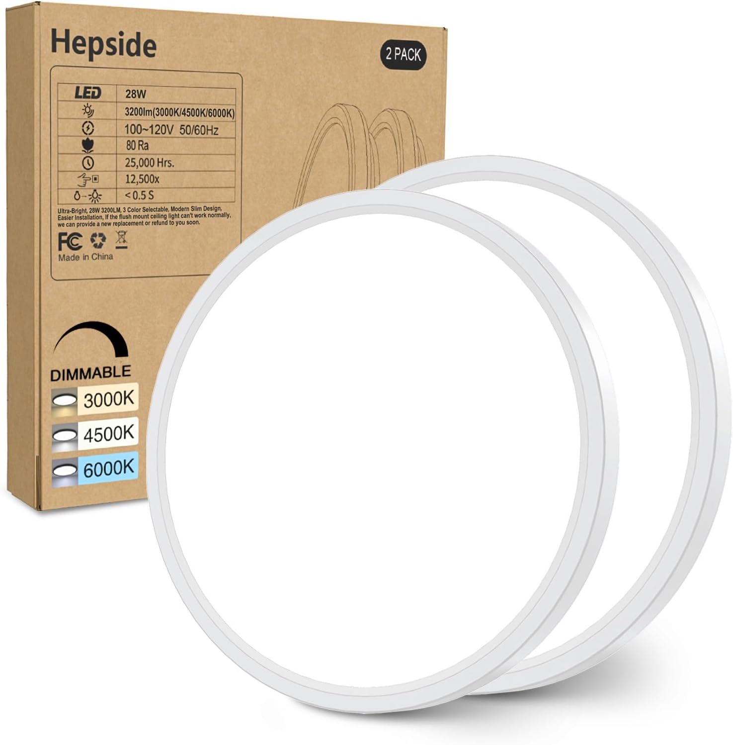 【Brightness Dimmable and 3 Color Modes】-Hepside led ceiling light flush mount has 3 kinds of color temperature (Warm white 3000K, Natural white 4500K, Daylight white 6000K), the brightness range can also be adjusted between 10%-100%.Also available as a night light, this ceiling light fixture has a minimum dimming brightness of 10% at 3000K warm white. Children or the elderly will feel safer at night due to the quiet and comfortable light source.