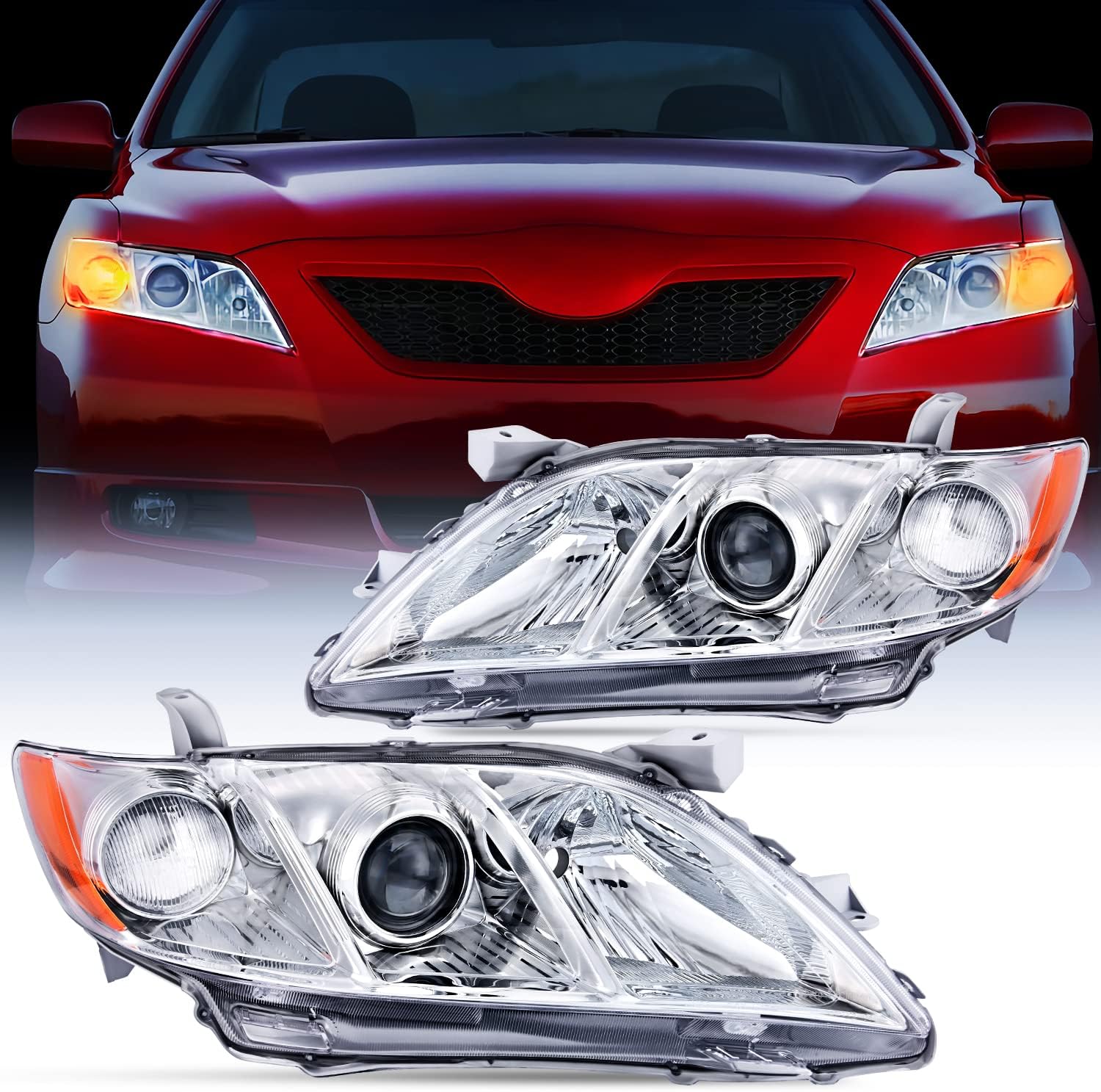 Nilight Headlight Assembly Compatible with 2007 2008 2009 Toyota Camry Headlamps Replacement Chrome Housing Amber Reflector Driver and Passenger Side