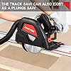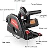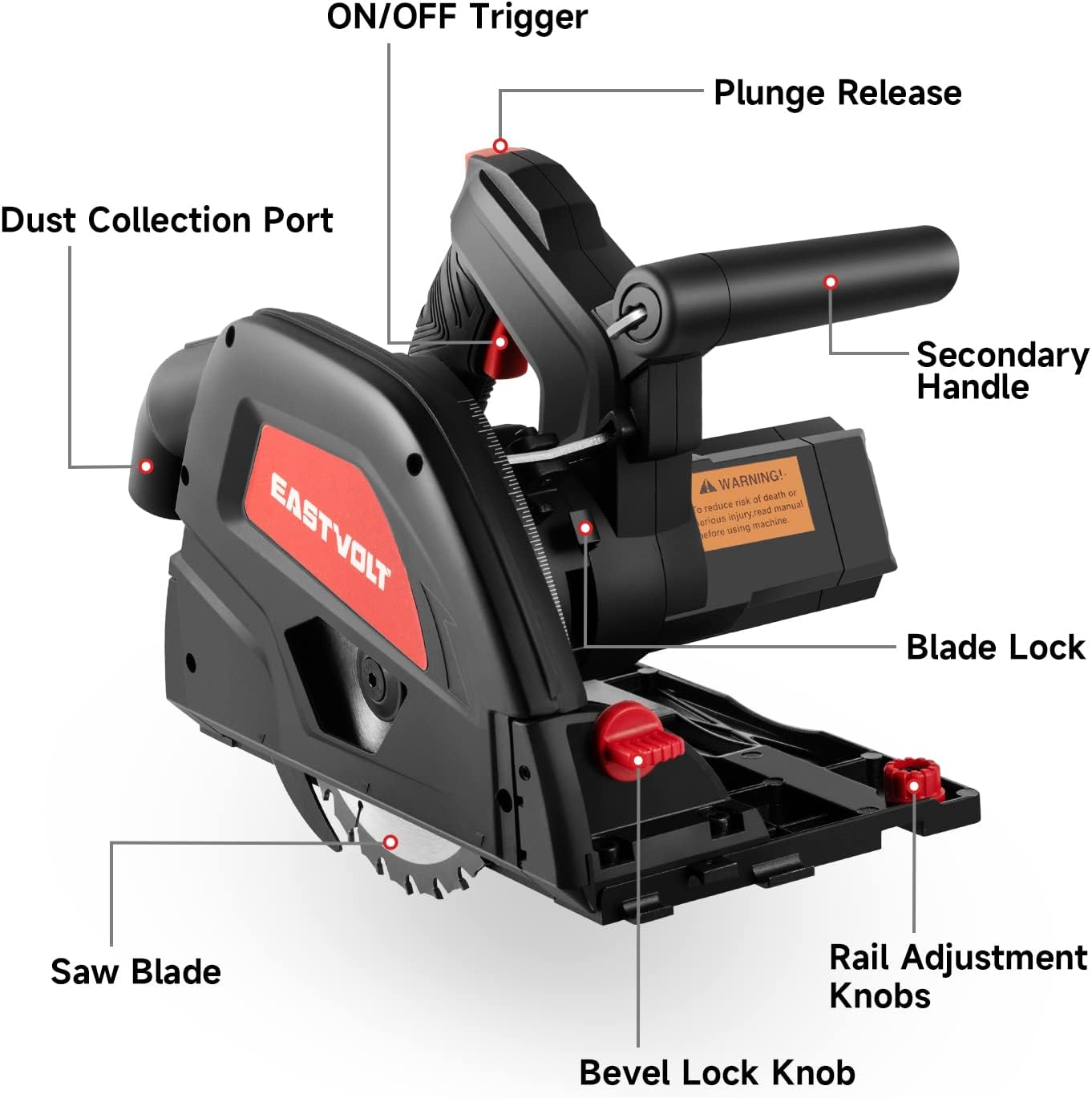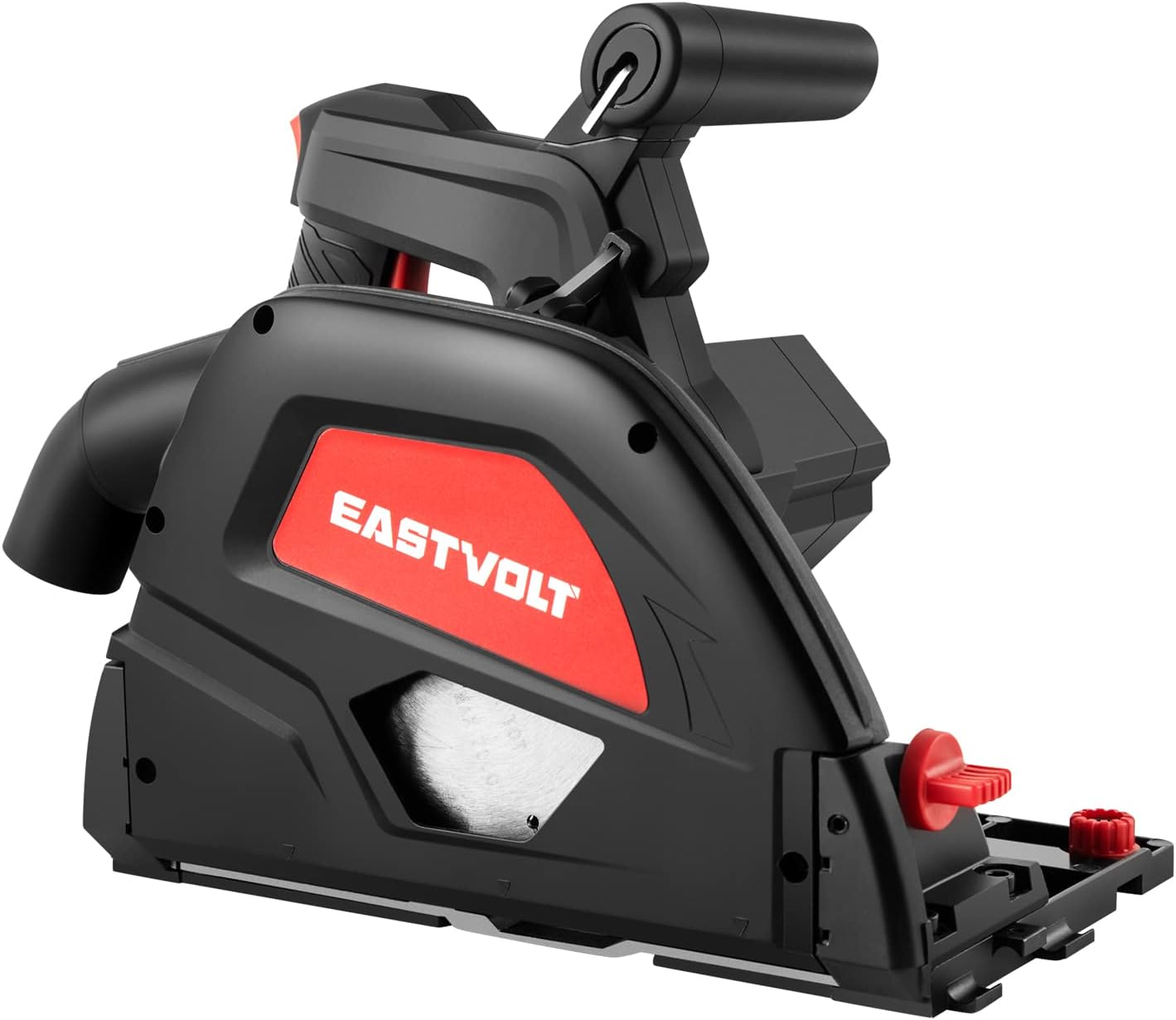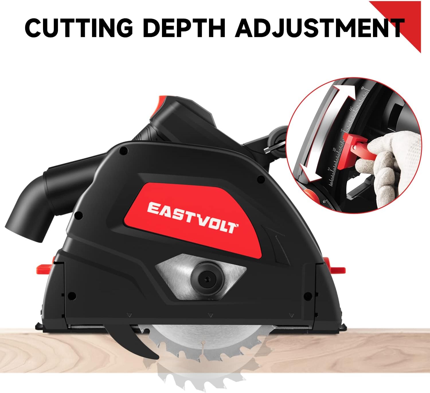Eastvolt 6-1/2" plunge-cut track saw, powerful 10 AMP motor rotates the 6-1/2 inch blade up to 5500 times per minute for cutting boards, compatible with the Eastvolt 55-Inch track saw guide rail (EVGR03) and the Eastvolt 2*27.5inch track saw guide rail (EVGR02), Eastvolt track saw track sold separately.