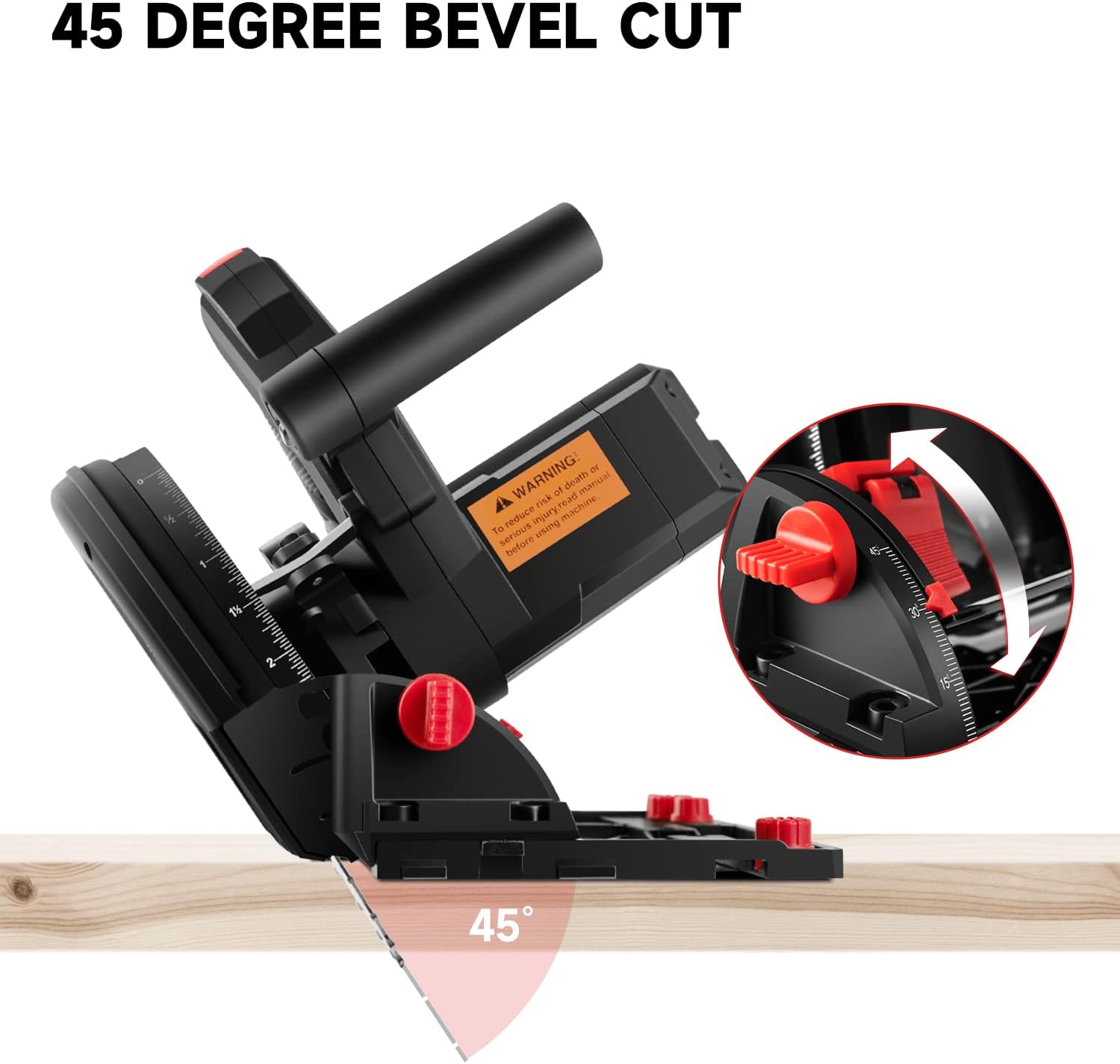 Eastvolt 6-1/2" Plunge-cut Track Saw, 0-45°Bevel Adjustment, 5500RPM Plunge Circular Saw for Wood Cutting