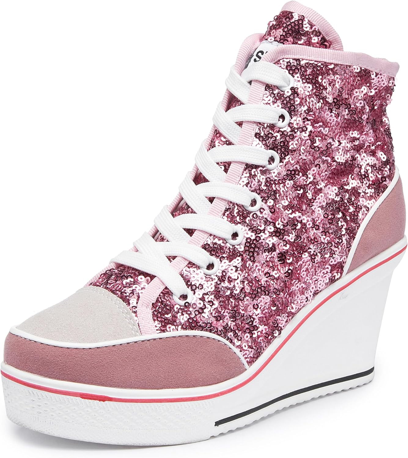Women's Canvas High-Heeled Bling Shoes Casual Shoes Fashion Sparkling Sneakers for Walking Platform Wedges Pump Shoes