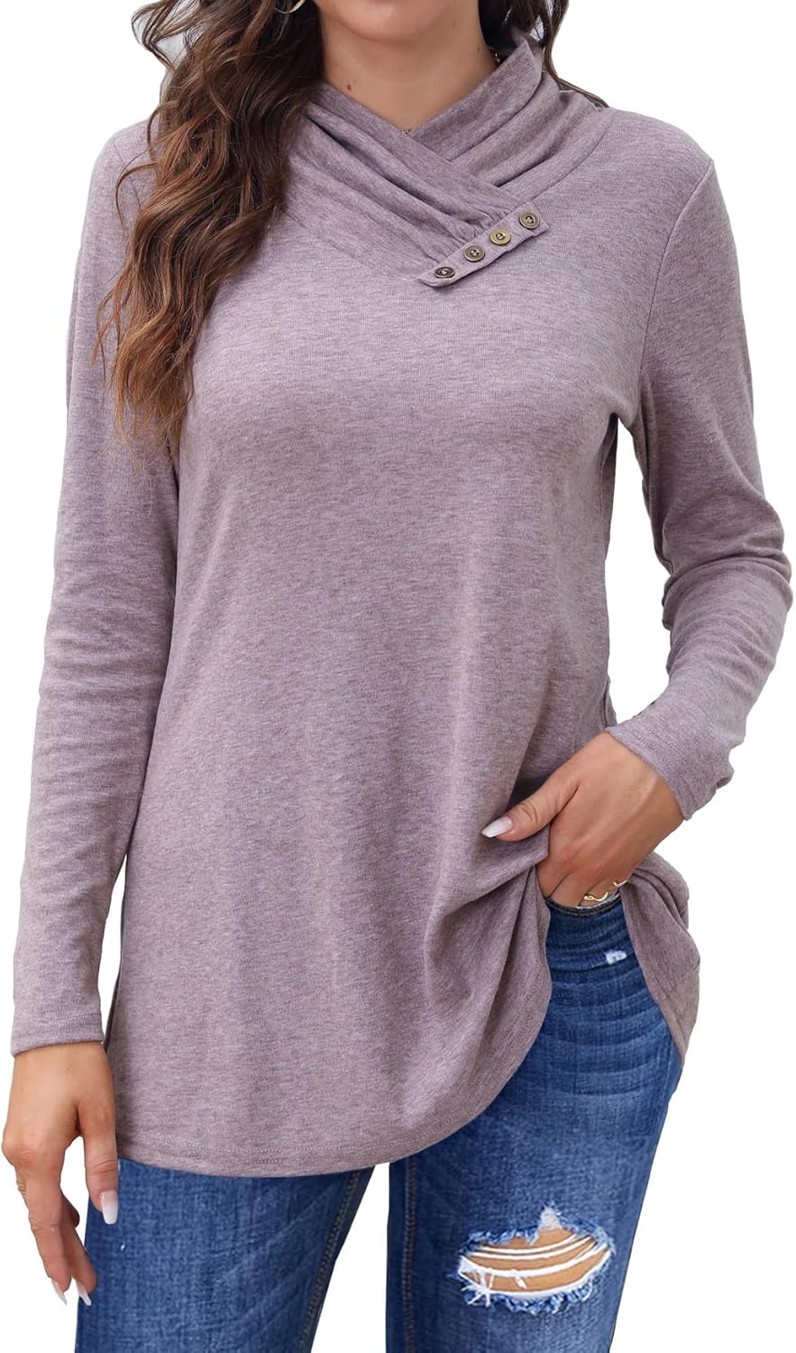Bluetime Women's Cowl Neck Long Sleeve Dressy Tunic Tops Shirts Lightweight Sweaters Fall Fashion
