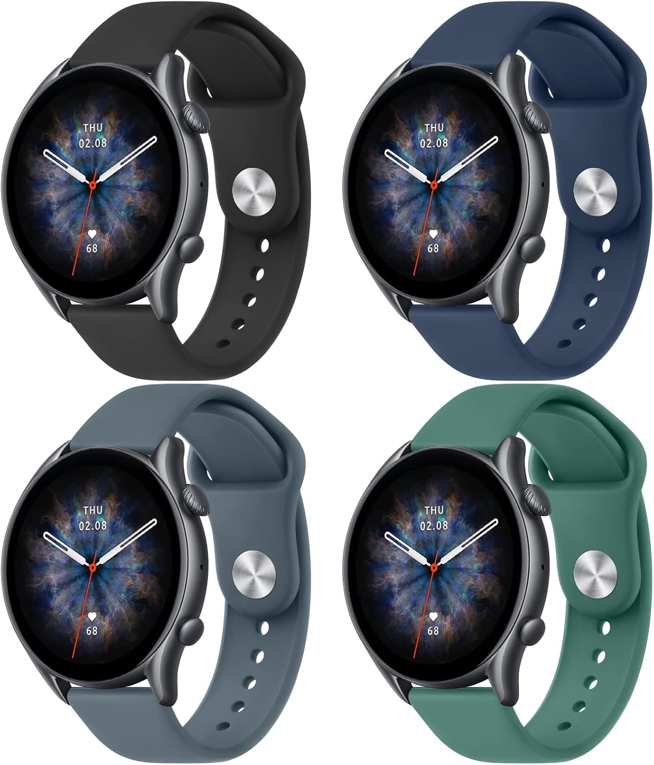 Correa de silicona Amzpas para Amazfit GTR - 22mm Paquete de 4 correas de reemplazo de pulsera de liberación rápida suave, correa deportiva para hombres y mujeres