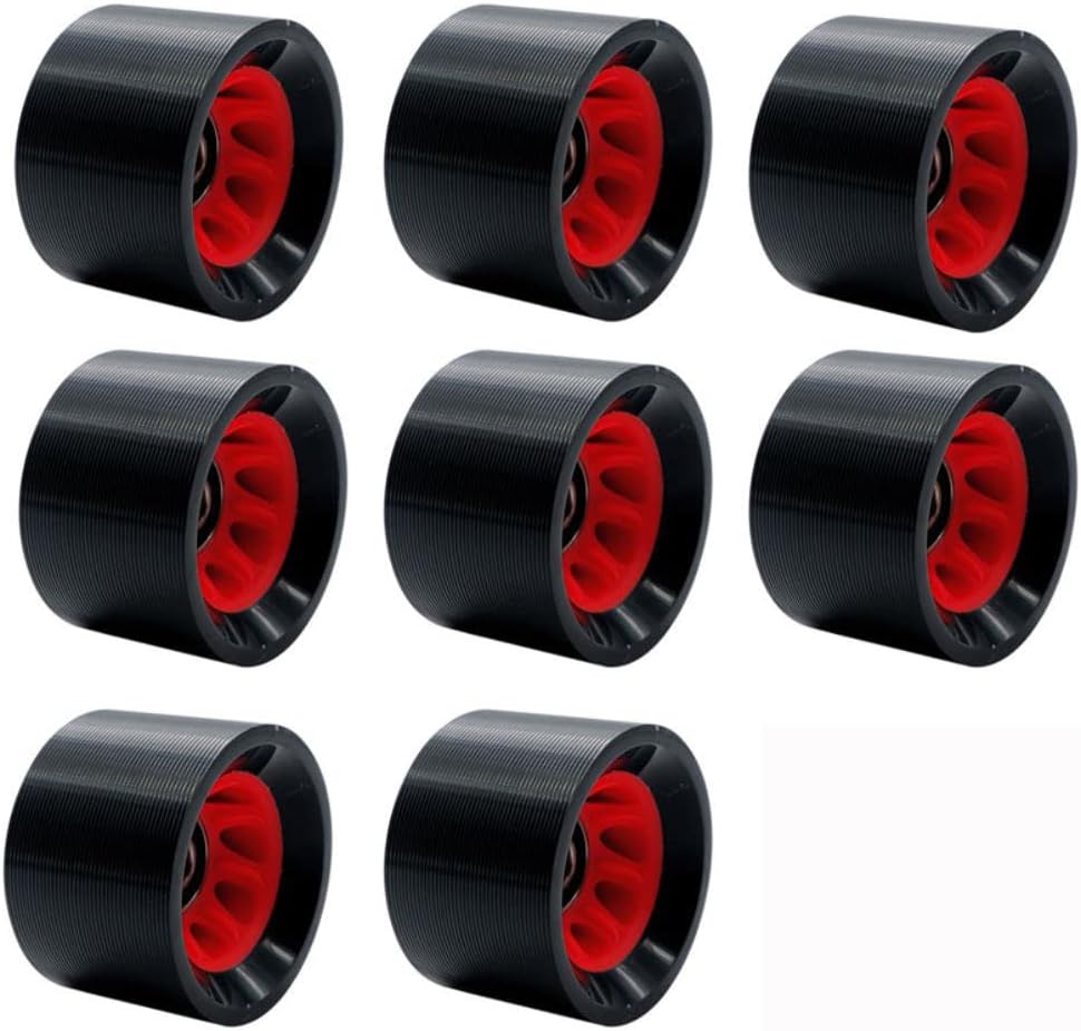 1. The product includes: 8 Pcs 58mm×39mm Quad skates wheels, 8 Spacers, 1 wrench, 16 608RS high-speed rotating bearings. Suitable for inline skates and skateboards. 2.The hardness of 95A has high stability during sliding and good wear resistance during braking. 3. Equipped with 608RS high-speed rotating bearing, gliding without noise, smooth and fast rotation speed and more durable. 4. The built-in speed-skating sleeve allows the bearing to rotate at high speed, giving you a more comfortable and smooth sliding experience. 5. The car line design increases the speed while ensuring comfort and good compression resistance, which is suitable for a variety of road surfaces.