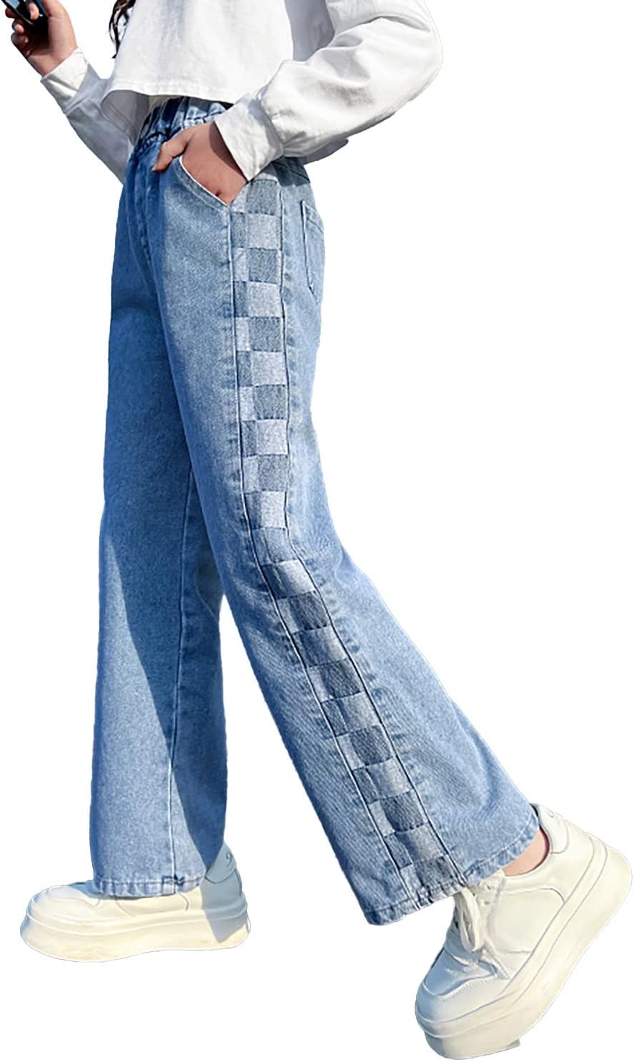 Rolanko Girls Jeans Denim Elastic Wasit Wide Leg Baggy Pants Kids Clothes 4-14 Years