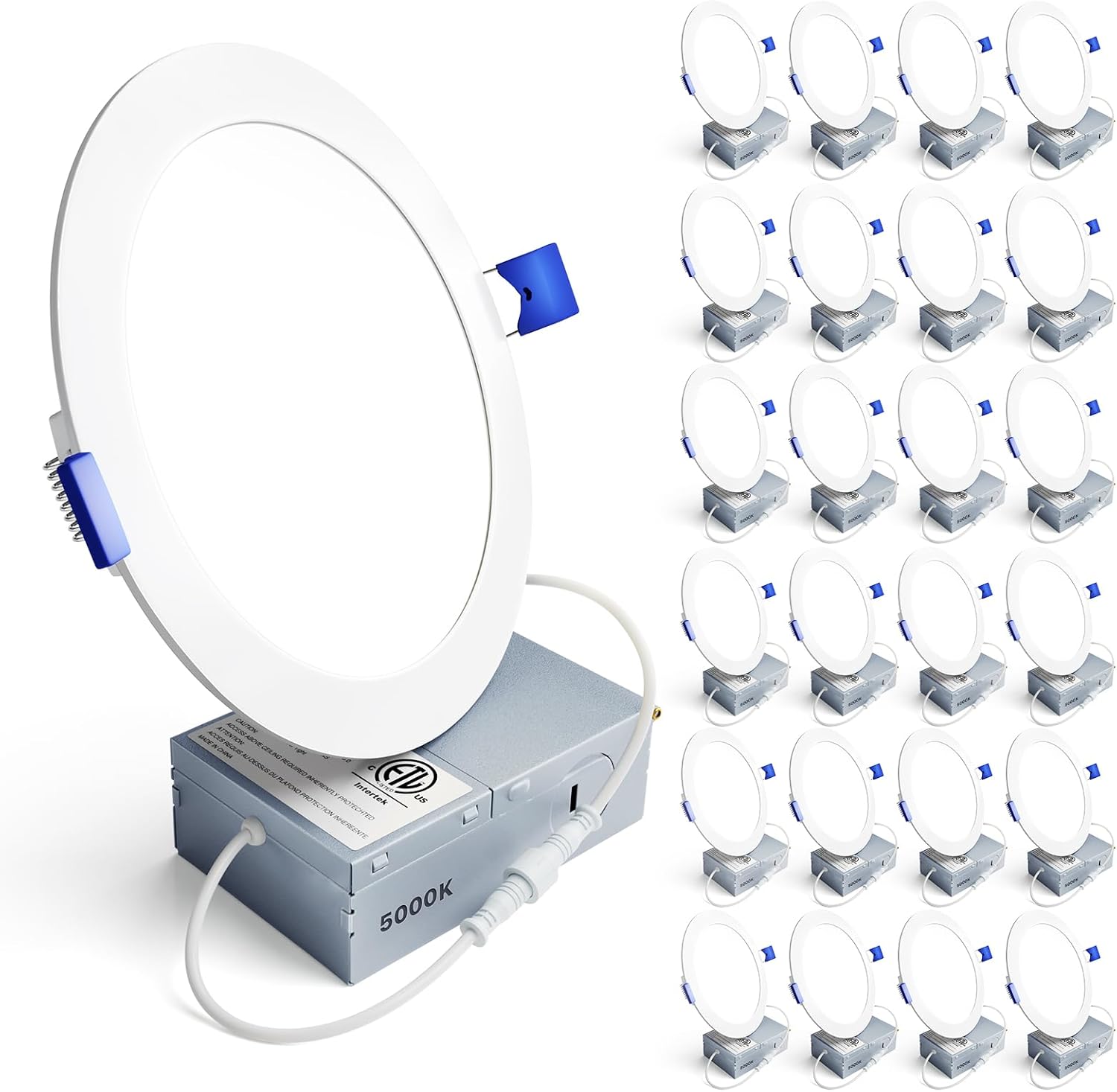 Ensenior 24 Pack 6 Inch LED Recessed Light, Dimmable, 5000K Daylight, 1200LM High Brightness, 12W 120V, Damp Rated, Ultra-Thin Canless Wafer Ceiling Light - ETL & FCC & IC
