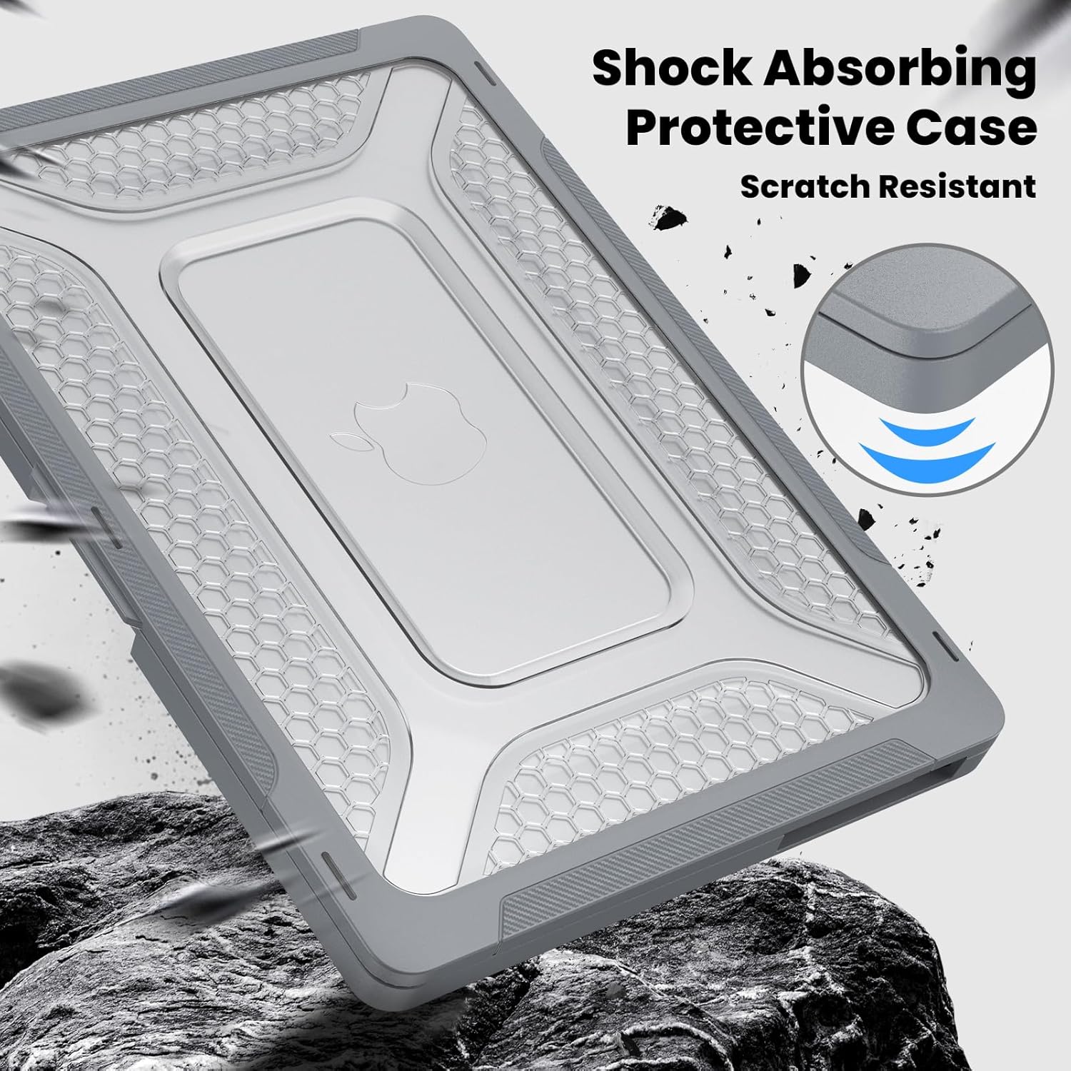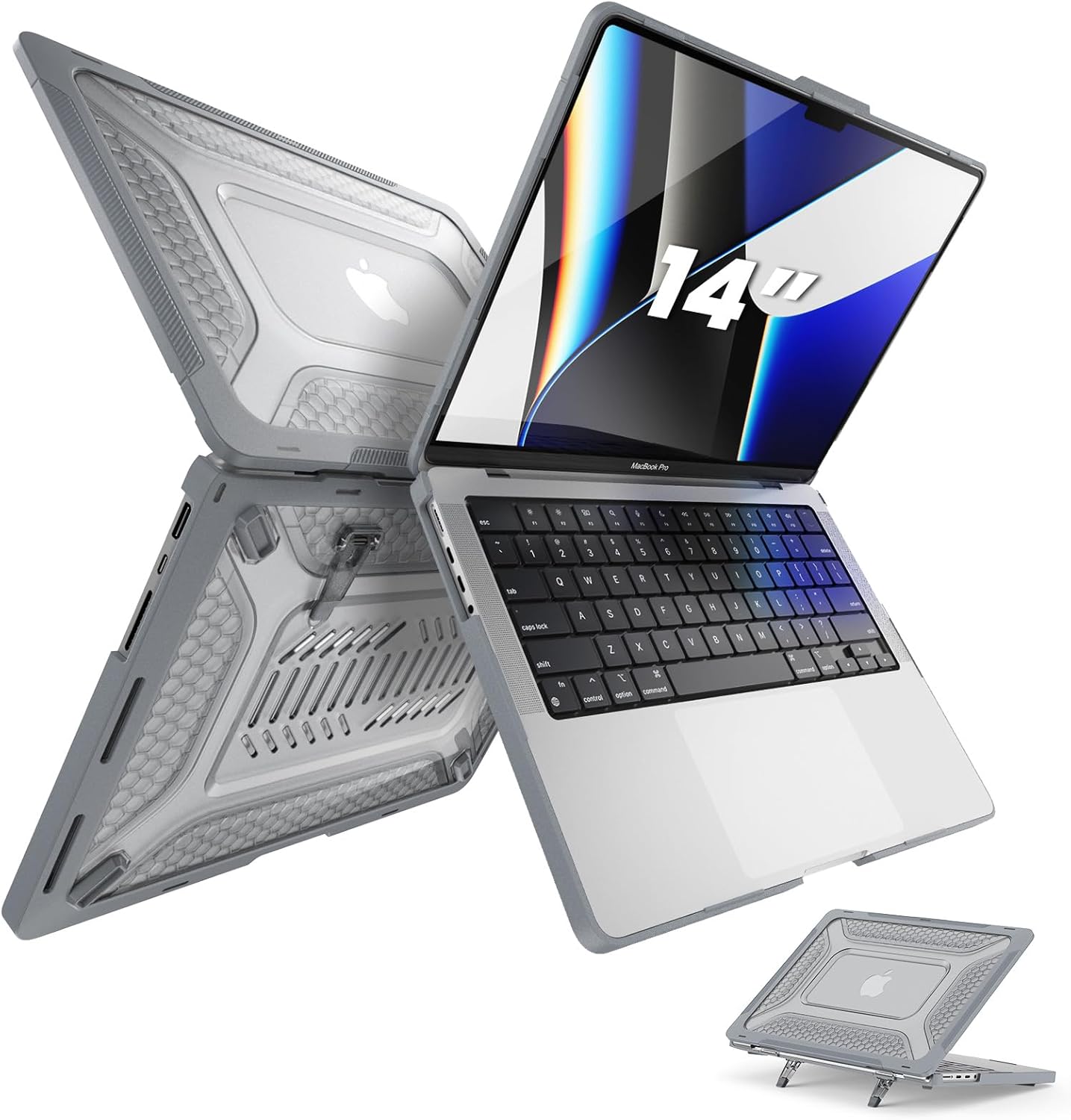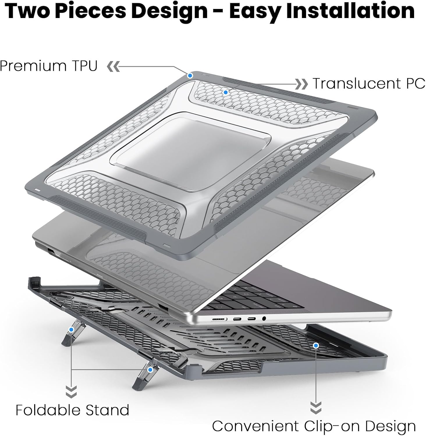 SEYMAC Designed Case for MacBook Pro 14 Inch 2023/2021 Release M3 M2 A2779 M1 A2442 Pro Max Heavy Duty Rugged Hard Shell Case Cover with Anti-Slip Stand for MacBook Pro 14", Grey