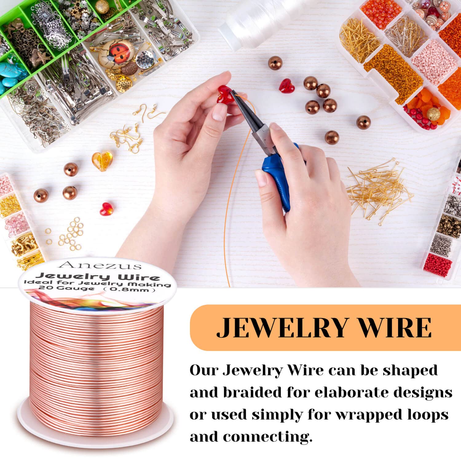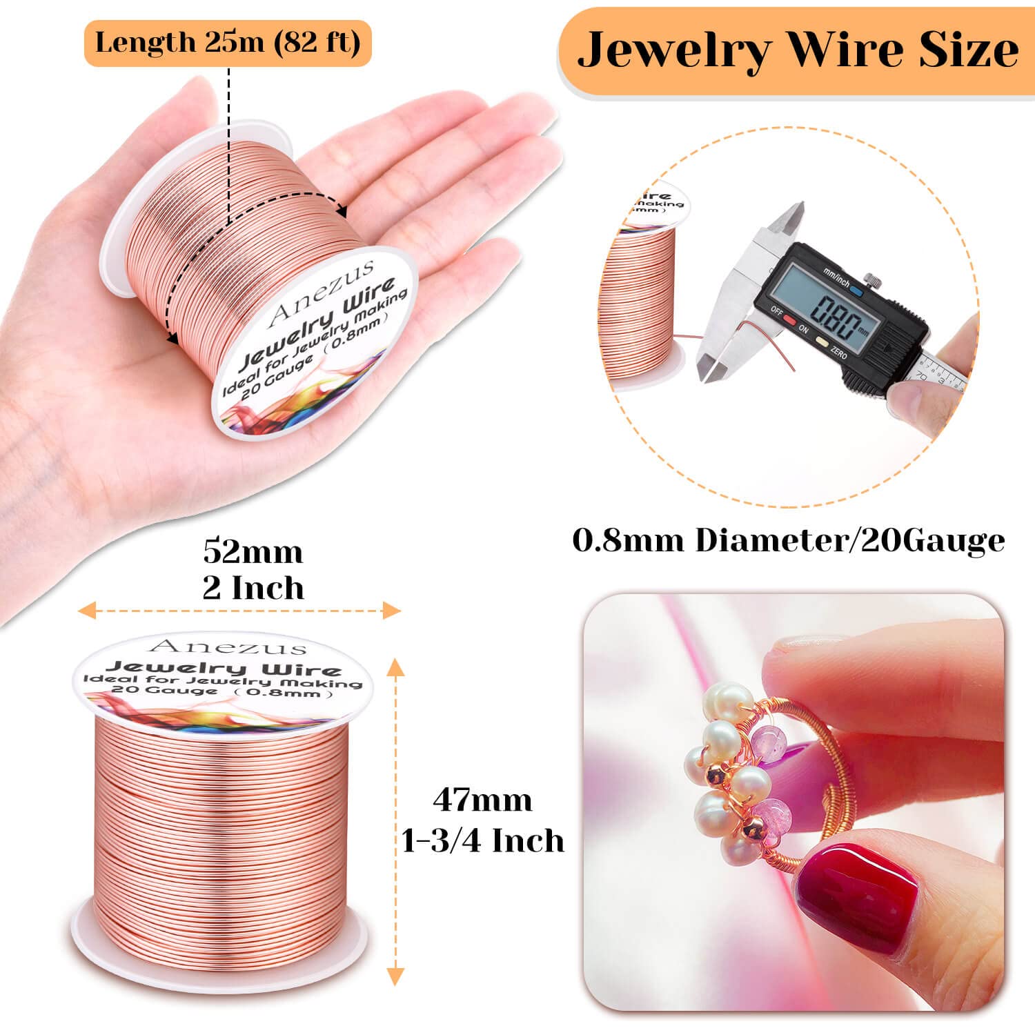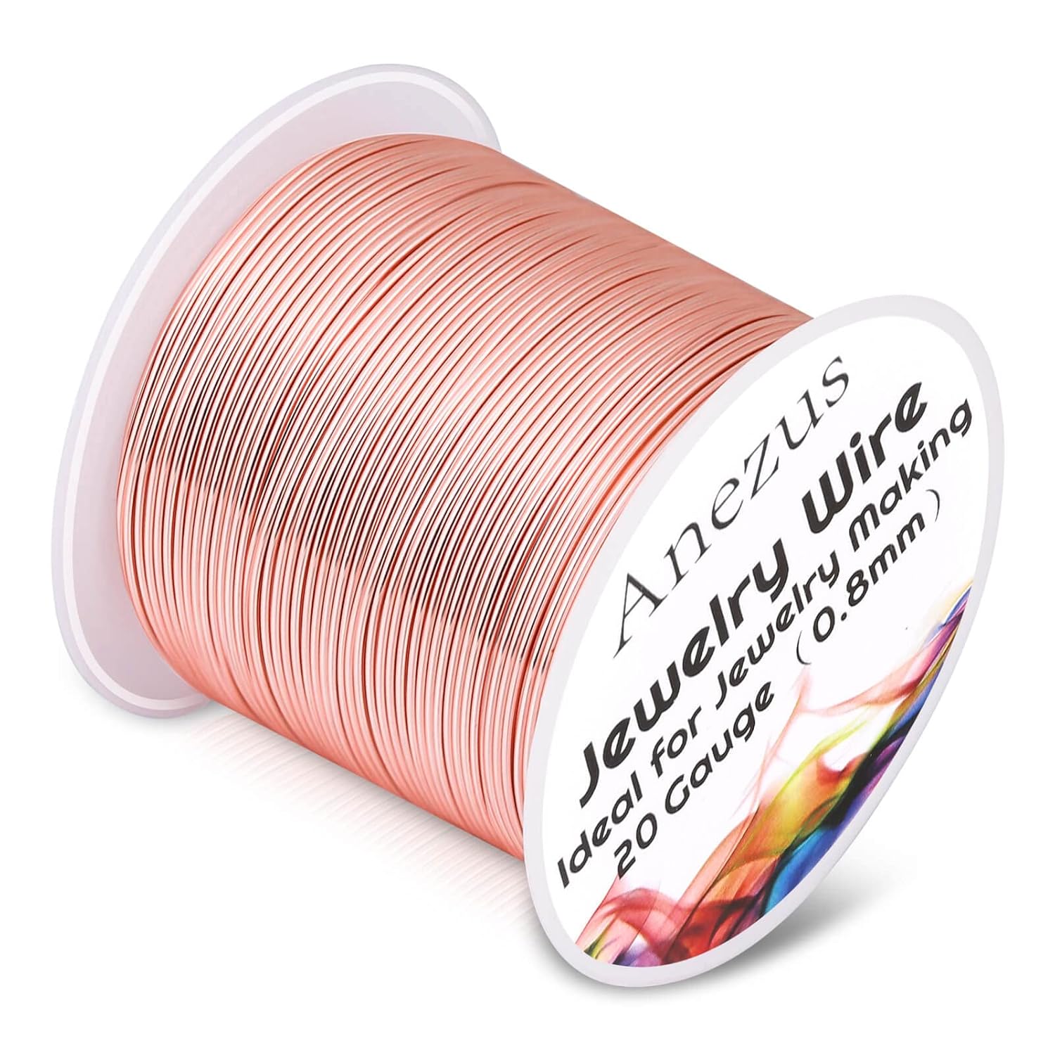 Alambre para joyas de calibre 20, alambre Anezus de oro rosa para manualidades, resistente al deslustre, alambre de cobre para hacer joyas, suministros y manualidades (oro rosa, 30 yardas/25 metros)