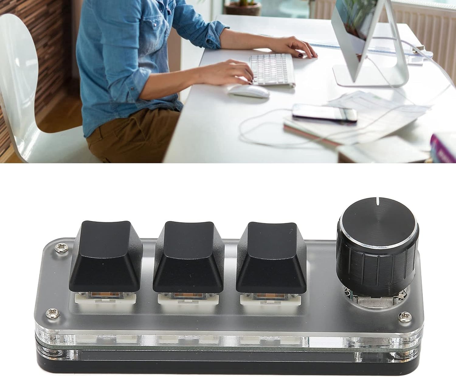 Yoidesu One Handed Macro Mechanical Keyboard, RGB LED Backlit Portable Mini 3 Key Small Keypad with Knob, One Handed Mechanical OSU Keypad for DIY Programming Gaming