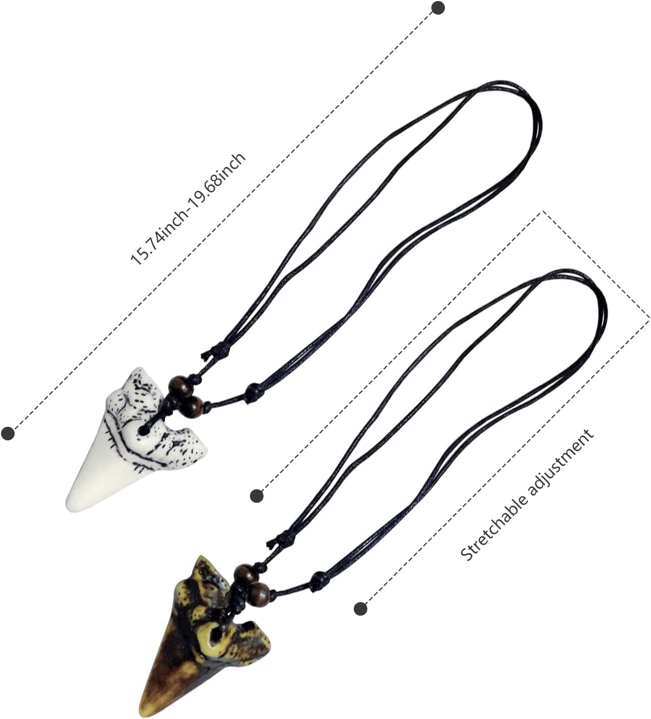 2 Pcs Shark Tooth Necklace for Men Fossil Shark Teeth Cool Sharktooth Beach Necklaces for Men Beach Surfer
