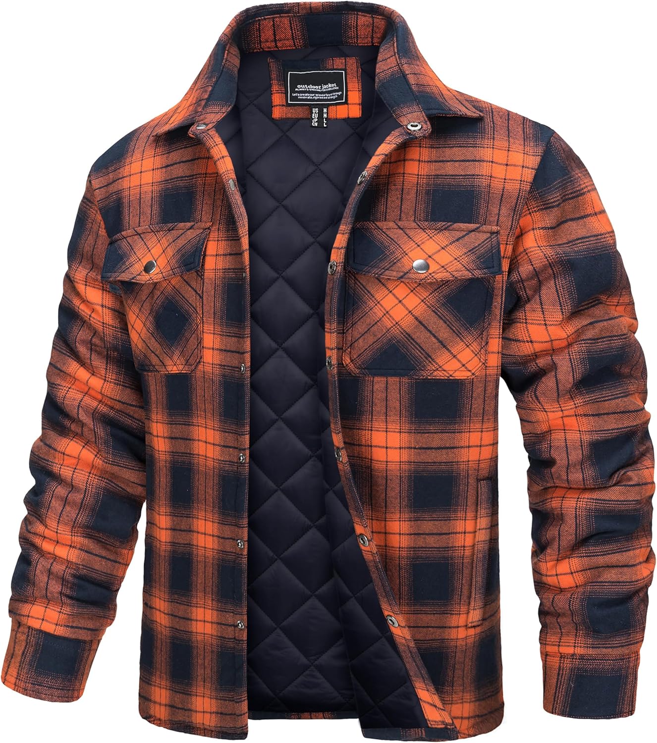 TACVASEN Men's Flannel Shirt Quilted Lined Theraml Winter Coat Button Down Insulated Flannel Shirts Jacket