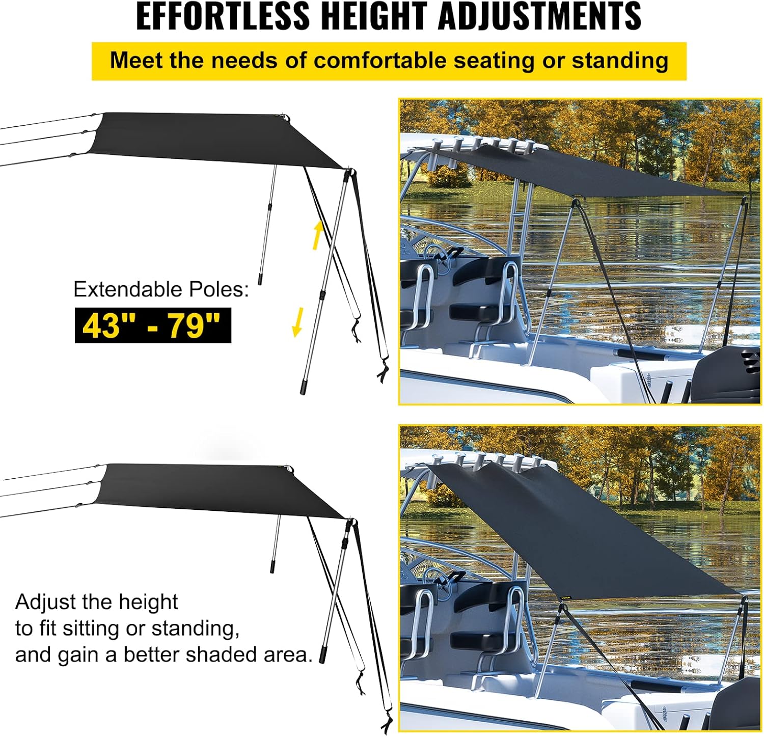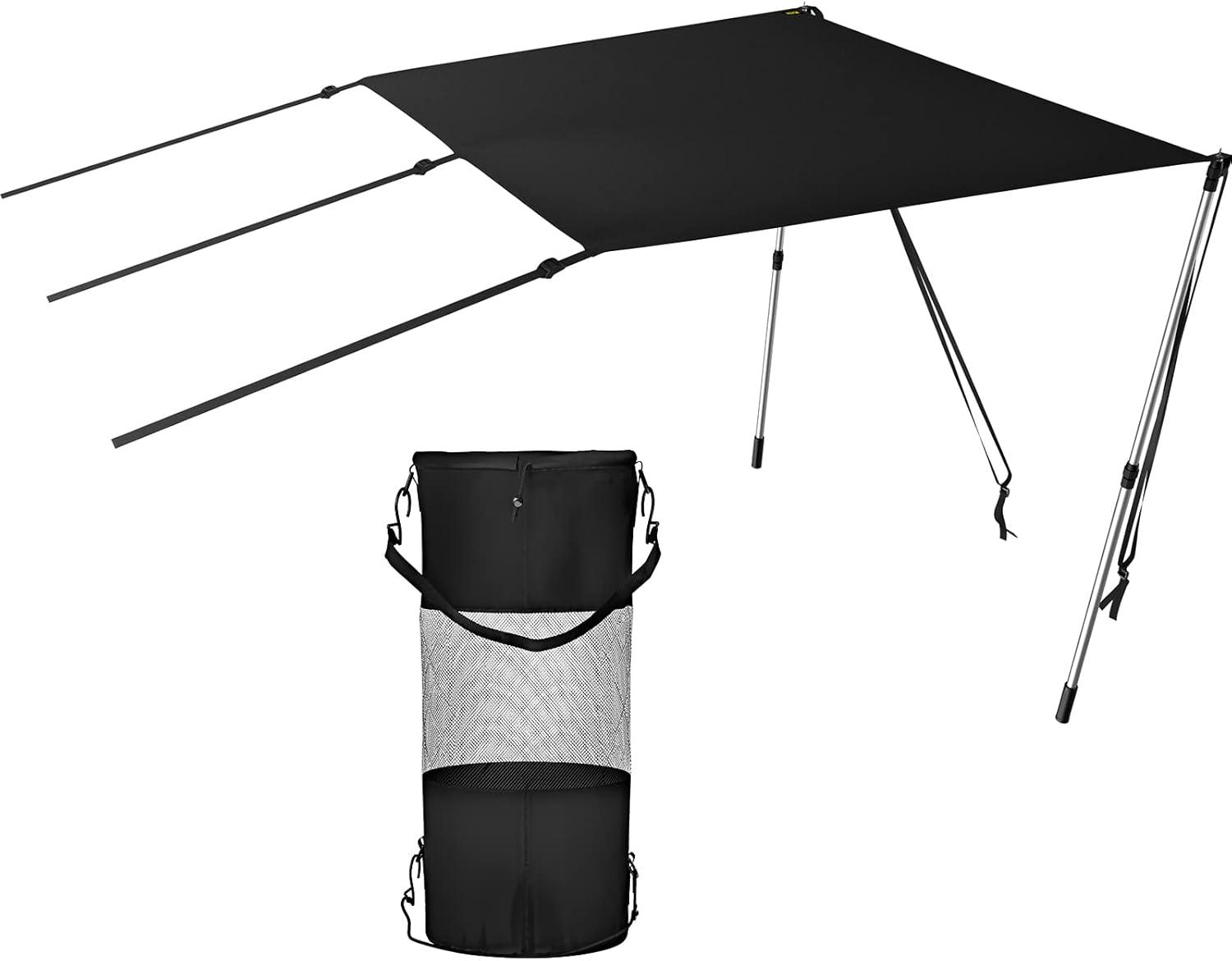 Kit de Sombra T-Top VEVOR 5' x 5', Kit de Extensión de Sombra T-Top a Prueba de UV de Poliéster 600D con Varillas Telescópicas de Acero Antióxido, Kit de Sombra T-Top Impermeable, Fácil de Montar para T-Tops y Bimini Top Negro