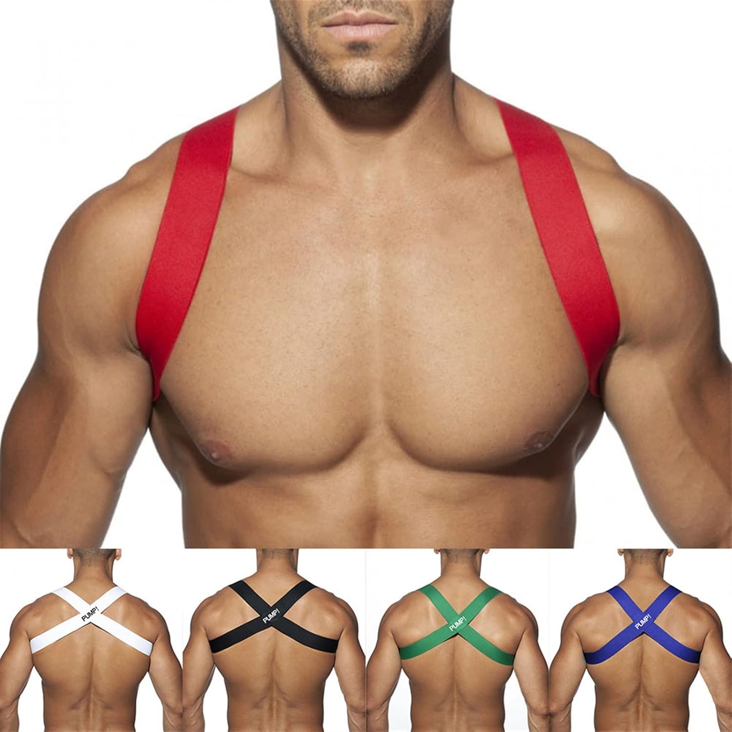 Correas de Pecho Masculinas Sexy, Arnés de Músculo Corporal, Cosplay de Club, Lencería de Costura, Traje de Underwear Gay, Banda Elástica de Bondage, Correa de Hombro (Color: Rojo)