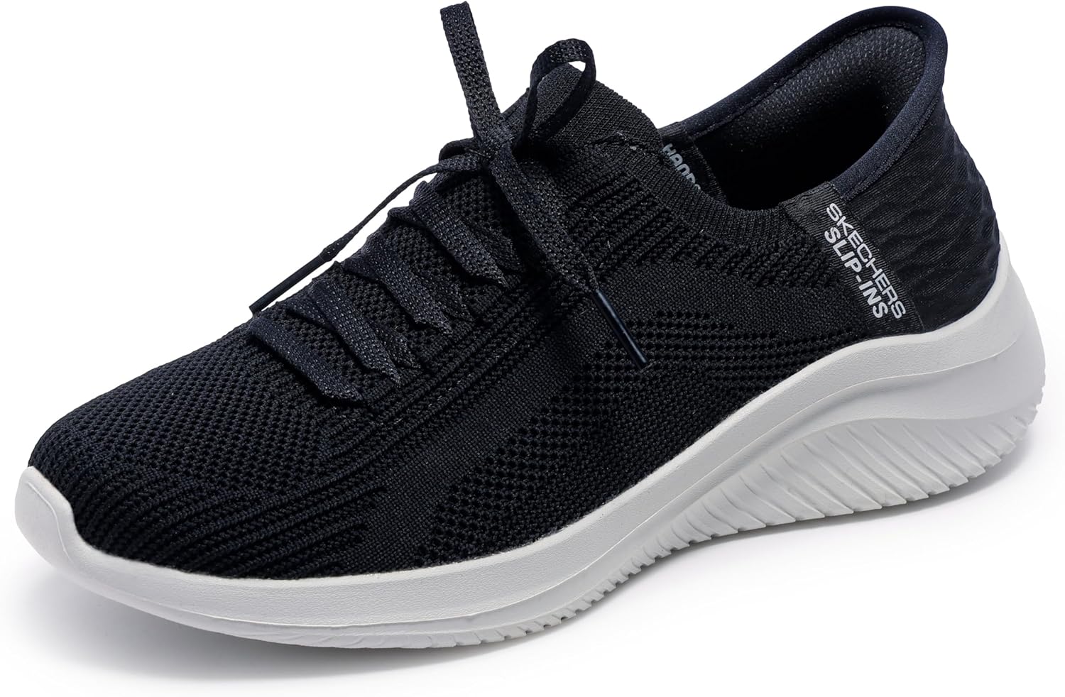 TOUCHLESS FIT™ Step into effortless comfort with Skechers Hands Free Slip-ins™: Ultra Flex 3.0 - Brilliant Path. Designed with our exclusive Heel Pillow™. This style features a Stretch Fit® engineered knit upper with deco laces, plus a cushioned Skechers Air-Cooled Memory Foam® insole.