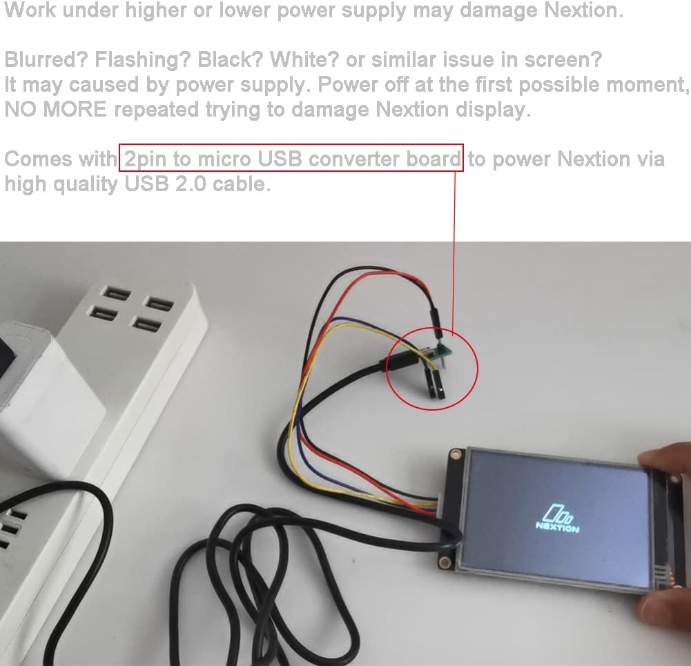 To ensure Nextion 3.5 enhanced display work as expected, it's recommended to supply power via power adapter, not usb to ttl or boards.