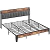 LIKIMIO King Size Bed Frame, Storage Headboard with Charging Station, Solid and Stable, Noise Free, No Box Spring Needed, Easy Assembly