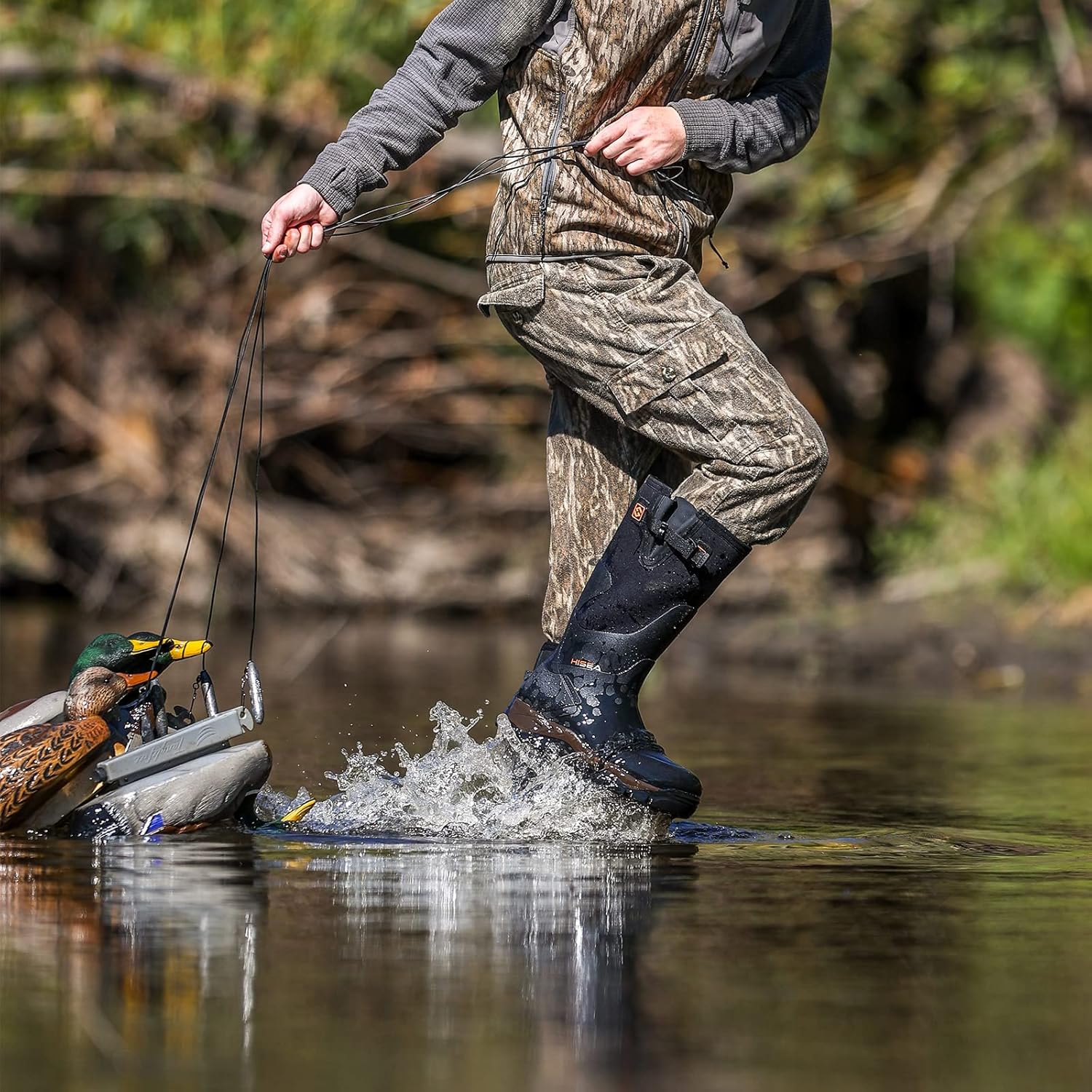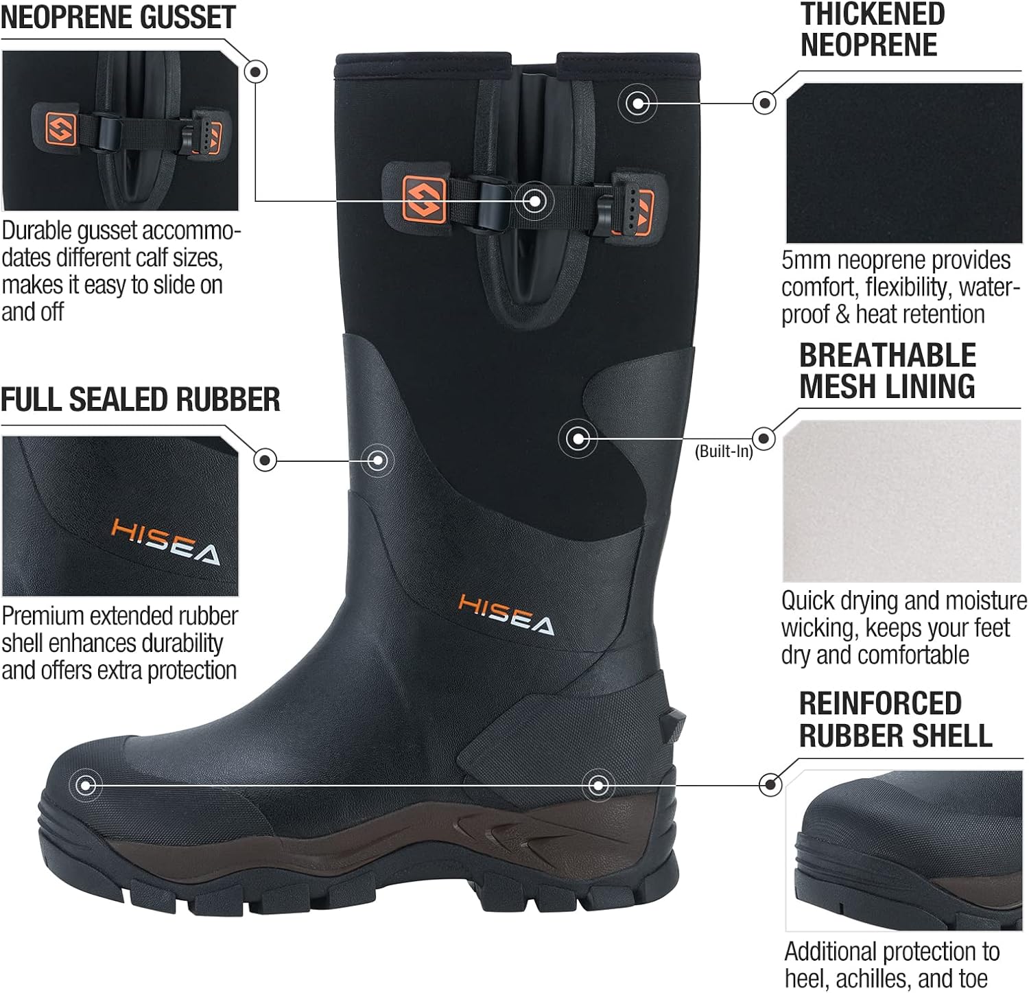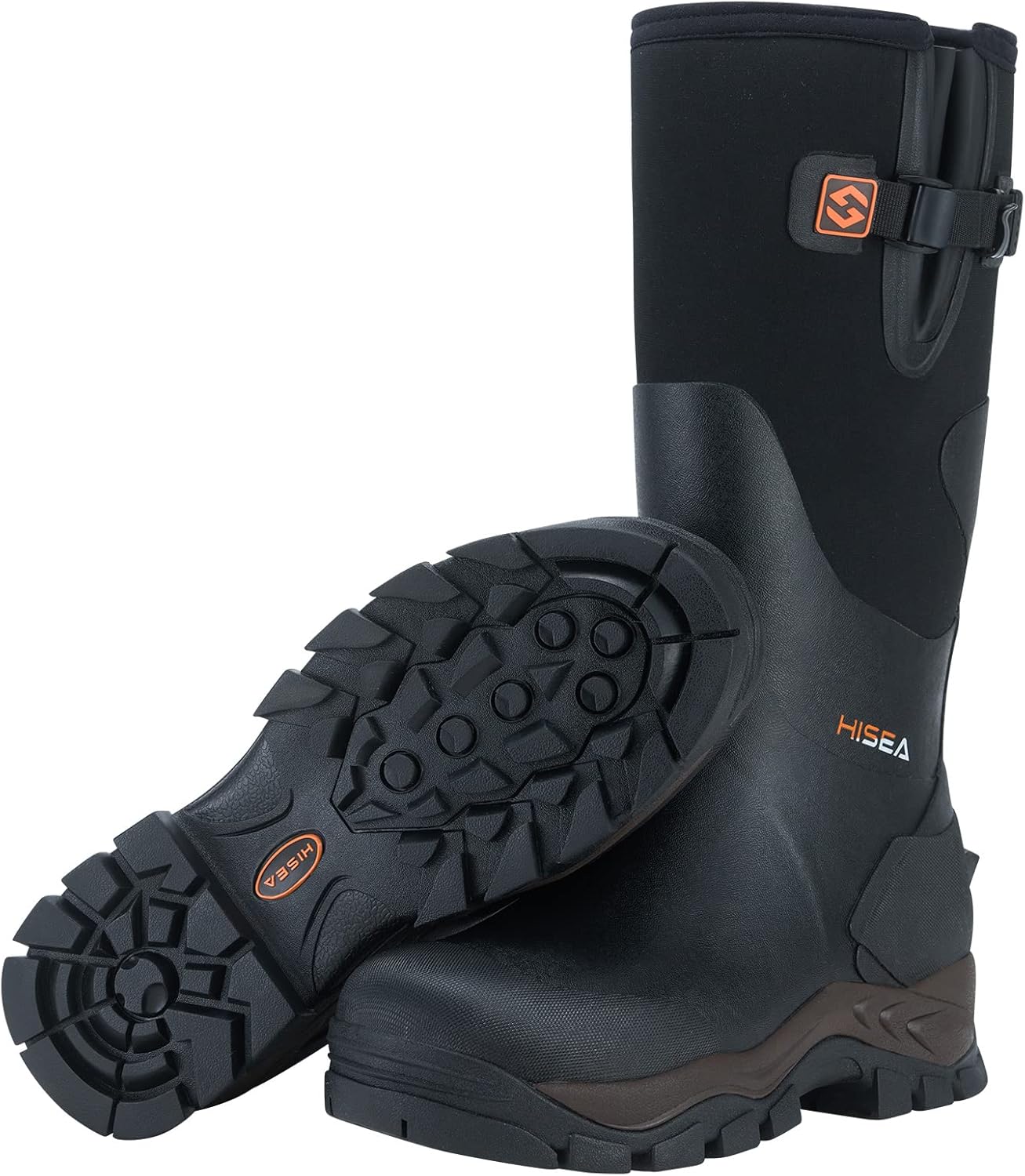 HISEA Rubber Hunting Boots for Men Waterproof Rain Boots for Mud Working Farming Fishing, Adjustable Calf