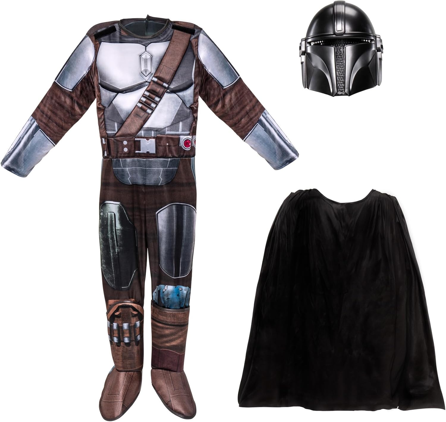 STAR WARS The Mandalorian Official Youth Halloween Costume - Padded Jumpsuit with Gloves, Detachable Cape, Plastic Mask