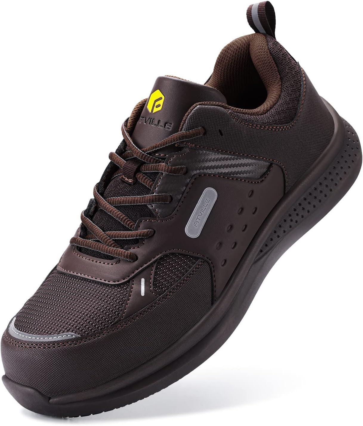 Zapatos de trabajo FitVille extra anchos para hombre con punta de acero compuesto, antideslizantes, impermeables y livianos, con núcleo de acero