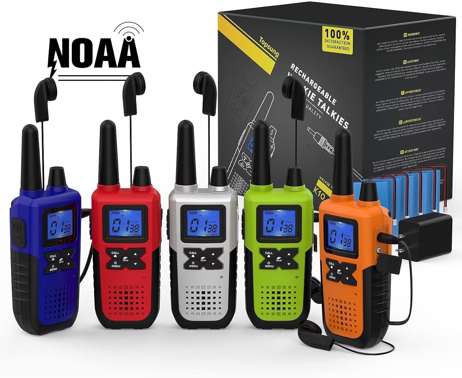 5 Walkie Talkies for Adults Long Range Rechargeable - 2 Way Radios 5 Pack Walky Talky with Earpiece and Mic Set USB Charger Lanyard NOAA Weather Alert
