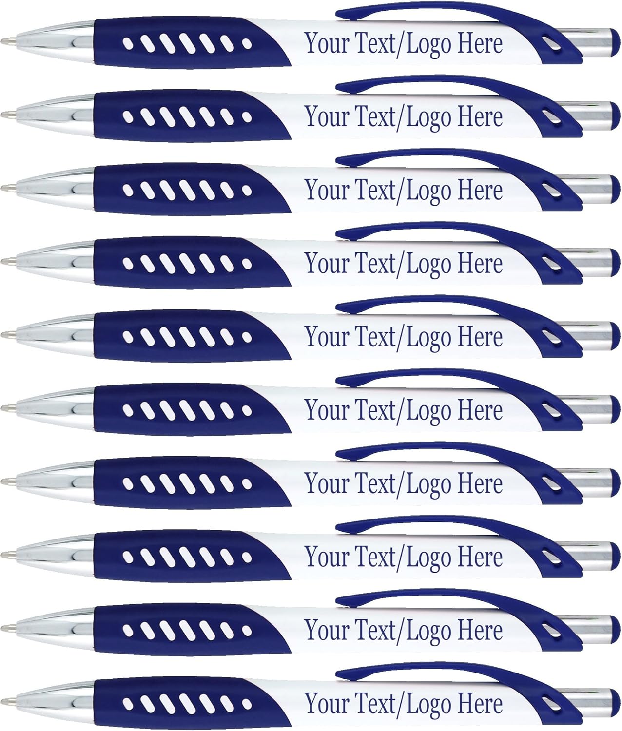 SyPen Promotional Pens With your Custom Logo or Text-300 Pack Bulk-for Businesses, Parties, and Events, Custom Printed White/Colored Click Action Ballpoint Pens, Rubber Grip, Black Ink, Blue