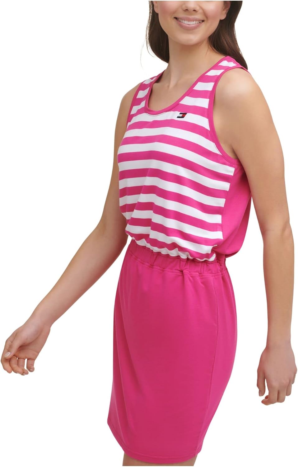 La elegancia deportiva se combina con lo moderno y lo casual con este vestido Tommy Hilfiger a rayas sin mangas.