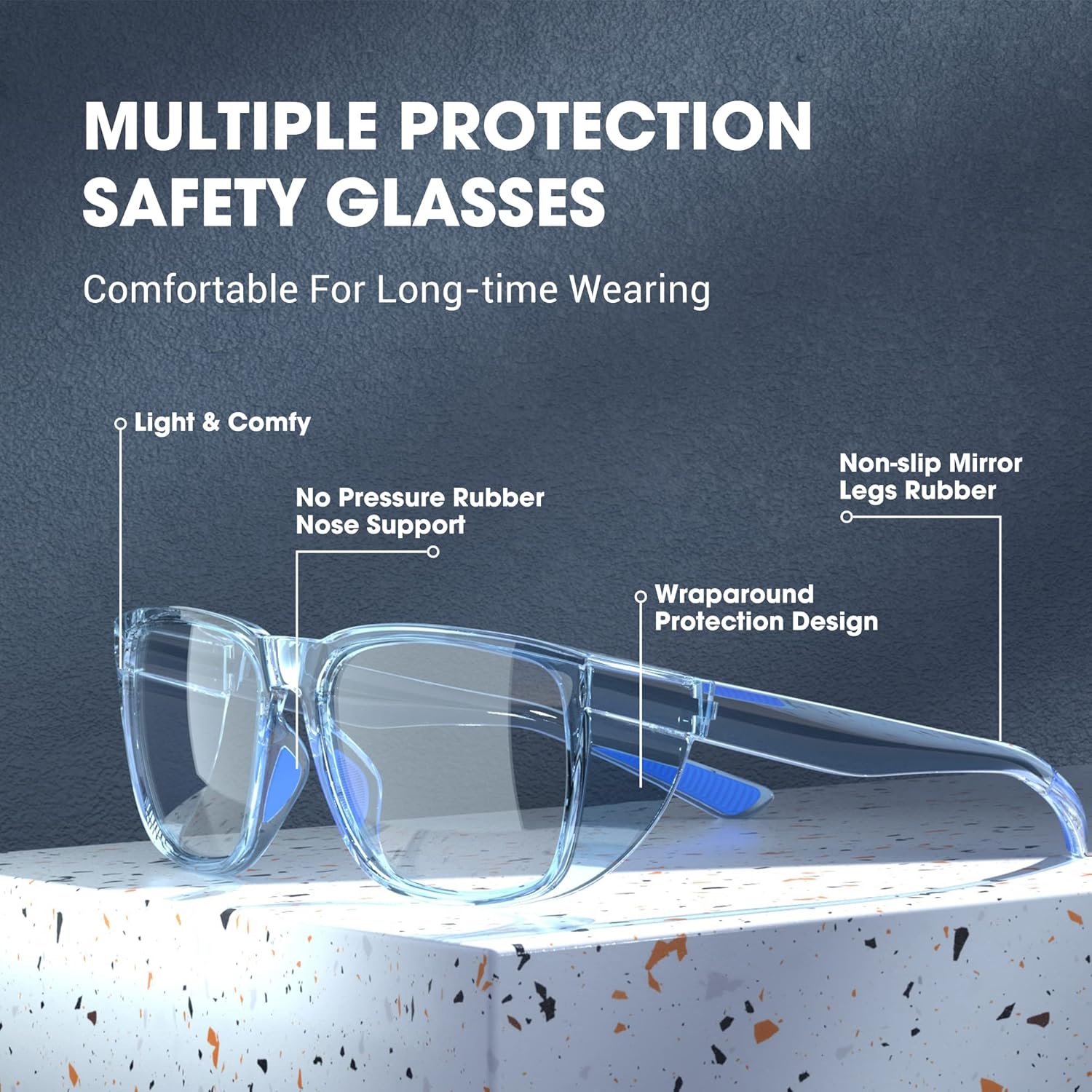 TOREGE Safety Glasses, Stylish Safety Goggles Eye Protection Anti-Fog & Scratch Resistant With Anti-Blue Light Lenses For Men