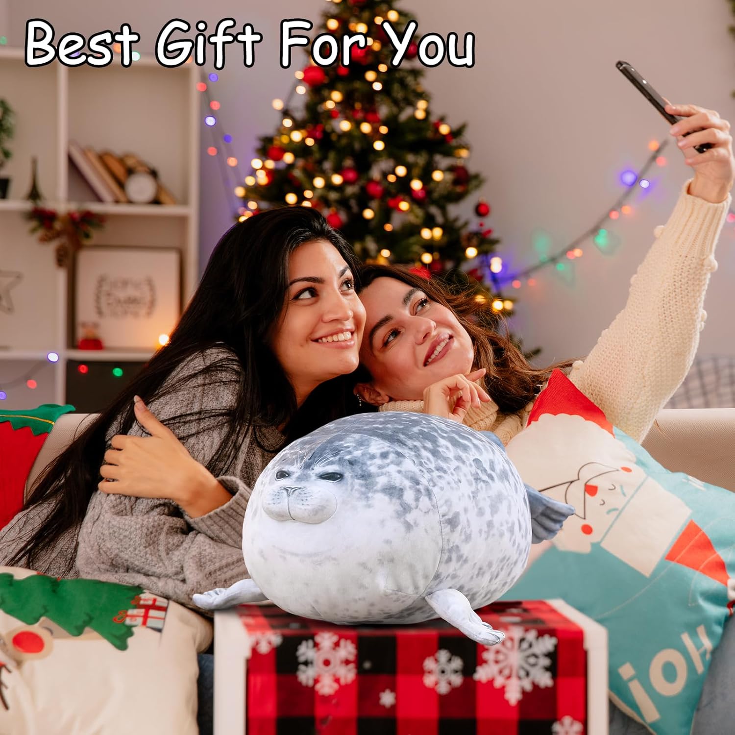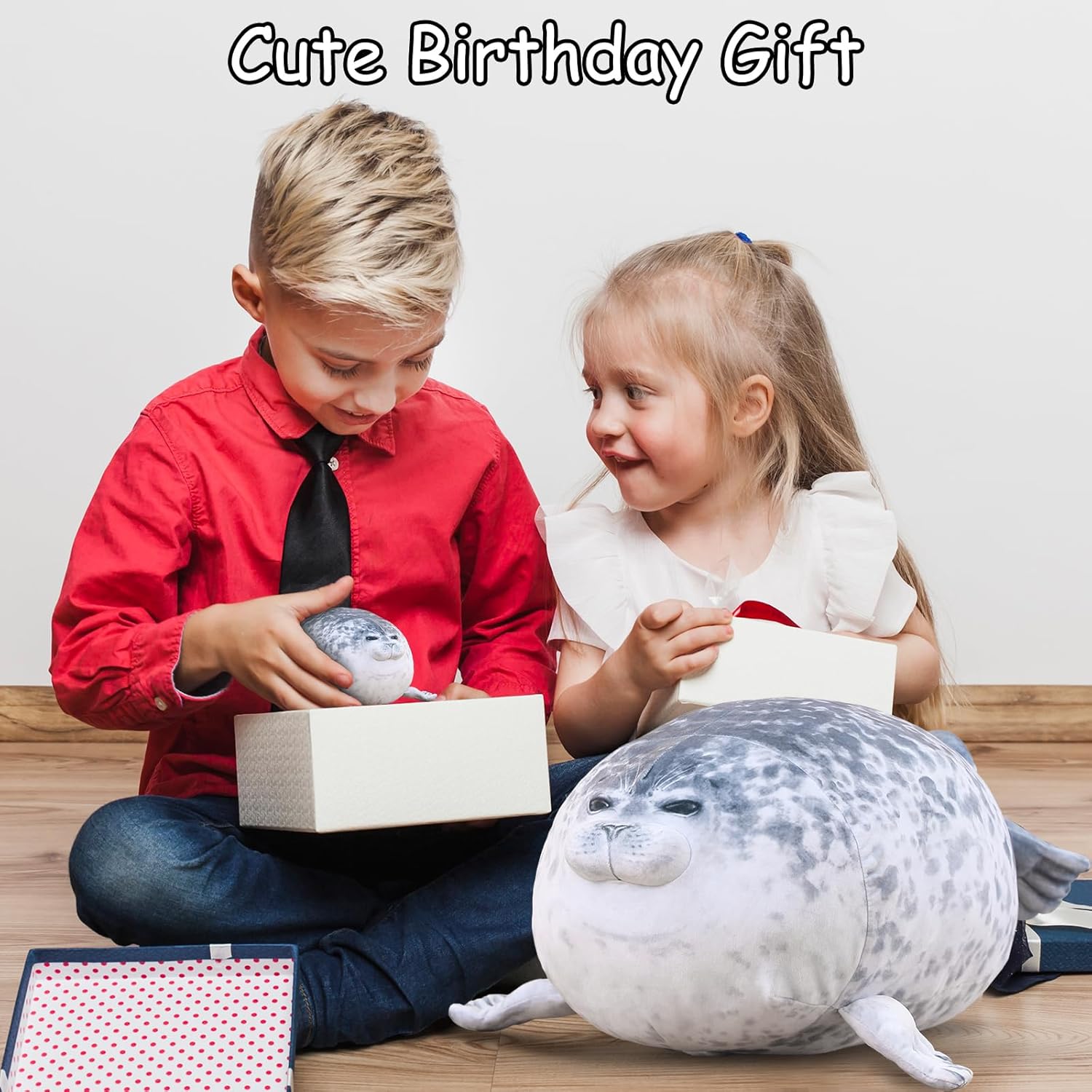 SQEQE Chubby Seal Pillow Plush with 4 Baby Seal Plushies in Her Tummy, Stuffed Cotton Plush Animal Toy Gift for Kids
