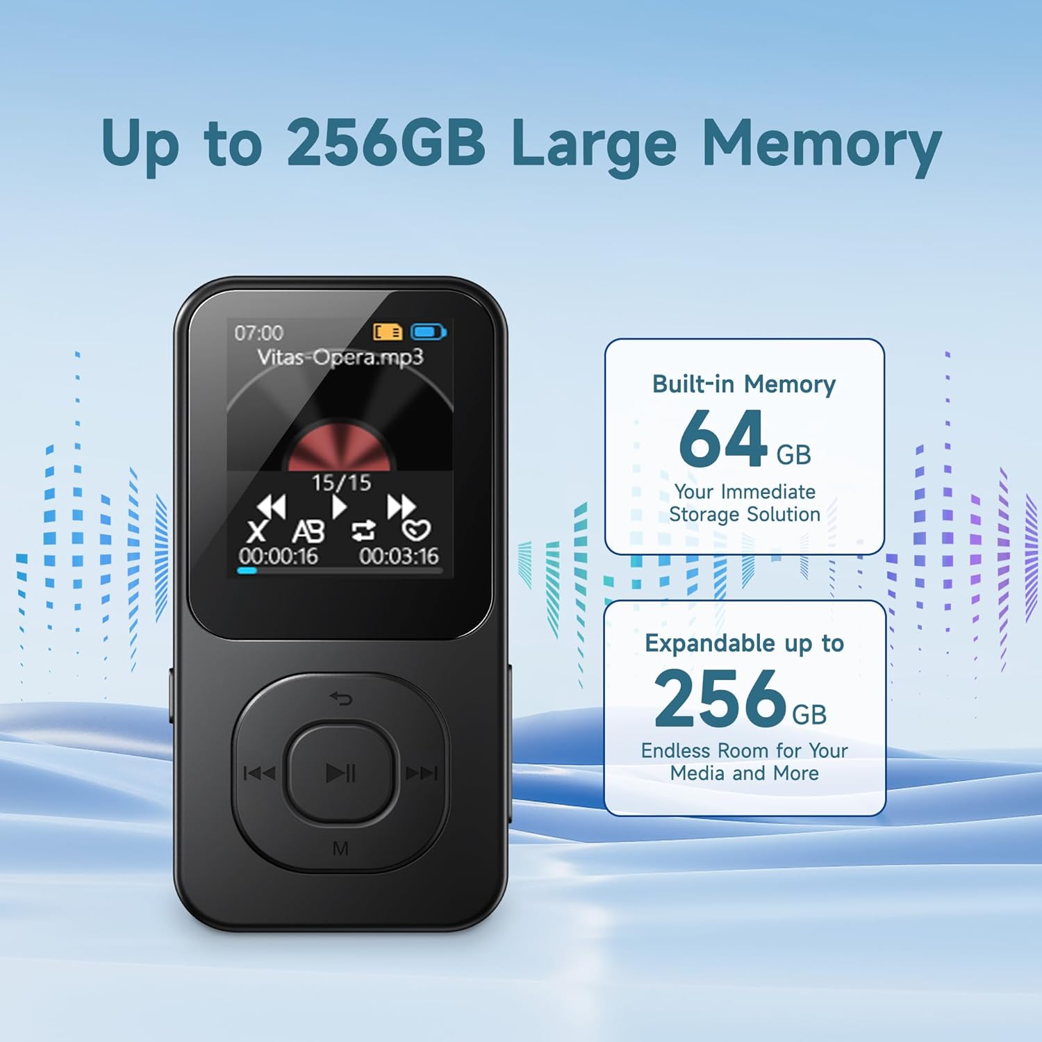 💕 【Almacenamiento de 32GB y Sonido Sin Pérdidas】Con una memoria incorporada de 32GB, este reproductor de música puede almacenar hasta 6000 canciones de alta calidad o 1500 archivos de música sin pérdidas. Y admite formatos de música sin pérdidas, incluyendo APE, FLAC, WAV, WMA, AAC, MP3, etc.