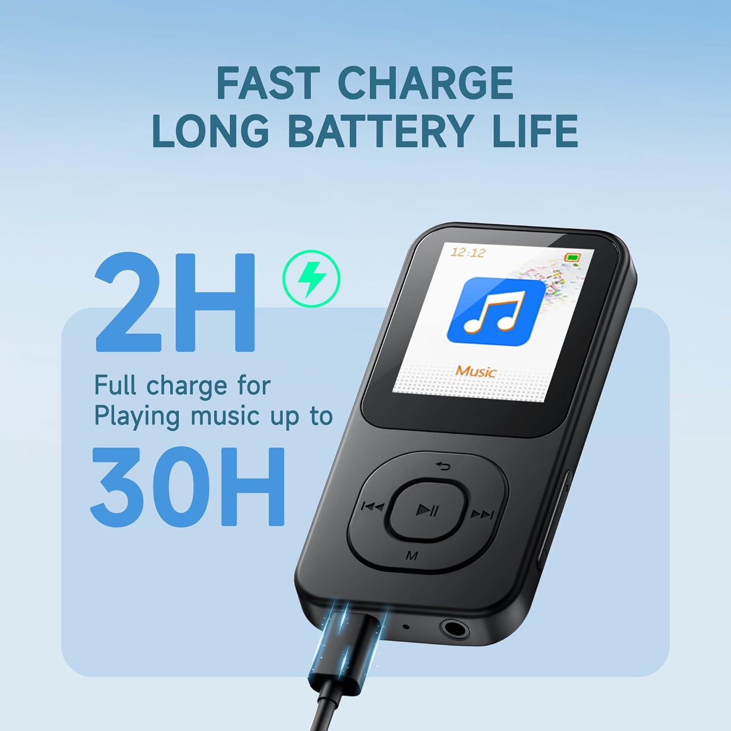 💕 【30 horas y Recargable】Este reproductor de audio tiene una batería recargable de polímero de litio incorporada, que permite reproducir música continuamente durante aproximadamente 30 horas (datos de laboratorio), mientras que toma 2 horas para cargarse completamente. La potente duración de la batería satisface completamente tus necesidades para disfrutar del ocio, la música, los viajes, los deportes, etc.