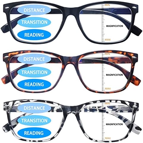 VIDEBLA 3 Pack Progressive Multifocus Reading Glasses for Women Men Blue Light Blocking Multifocus Spring Hinges Readers (3 Mix Color, 1.25, multiplier_x)