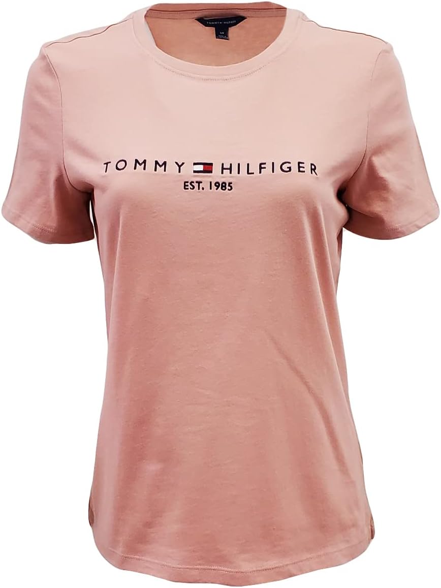 Tommy Hilfiger Womens Line Crew-Neck T-Shirt (Large, Dark Pink (Est.1985))