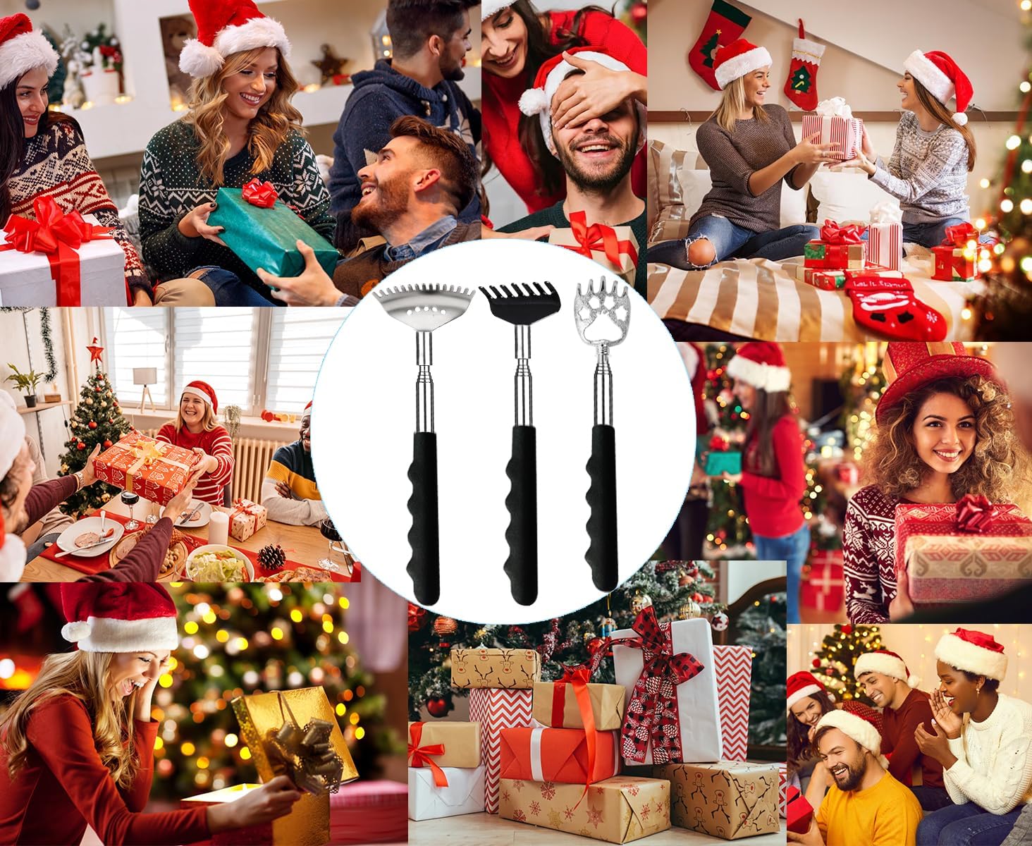 3 Pack Different Back Scratcher Metal Portable Telescoping with Rubber Handles, Extendable Back Massager Tool with Beautiful Box, Stocking Stuffers for Men Women Christmas Presents(Black)