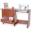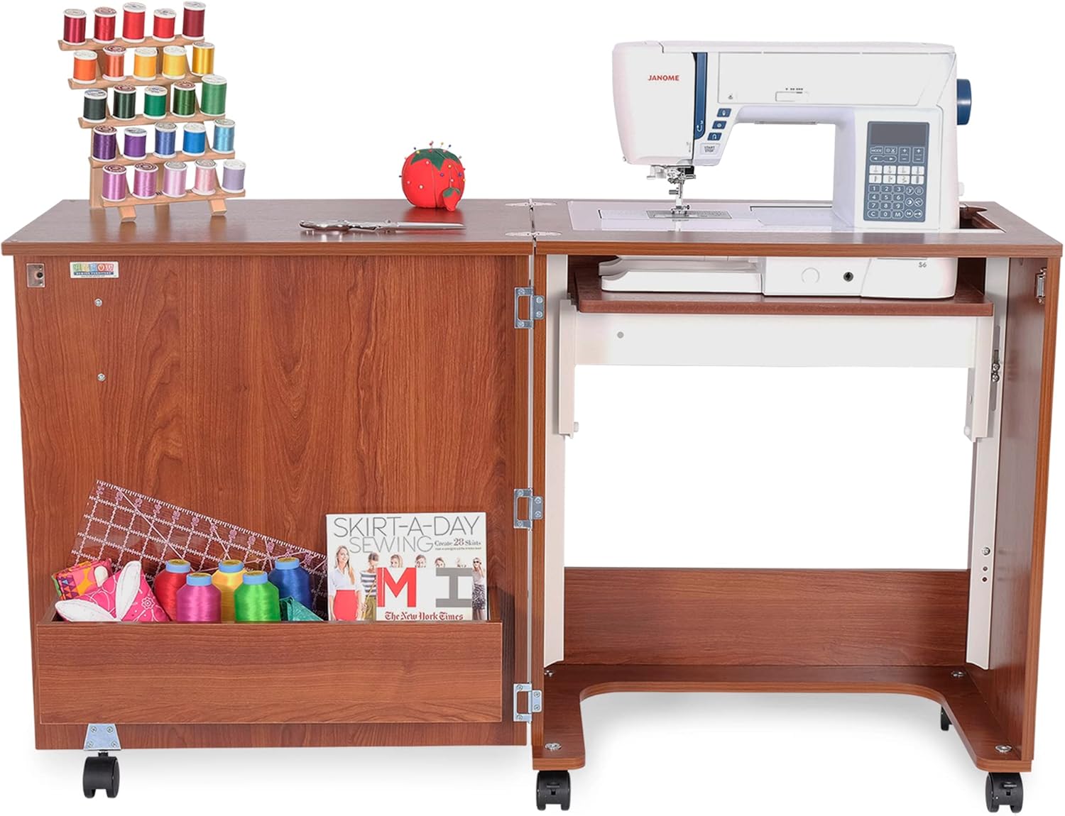 Arrow Sewing Classic Furniture “Judy” Sewing Cabinet: Portable, Folding, Compact, Locking Wheels, with Storage Bin and Hydraulic Machine Lift-Teak